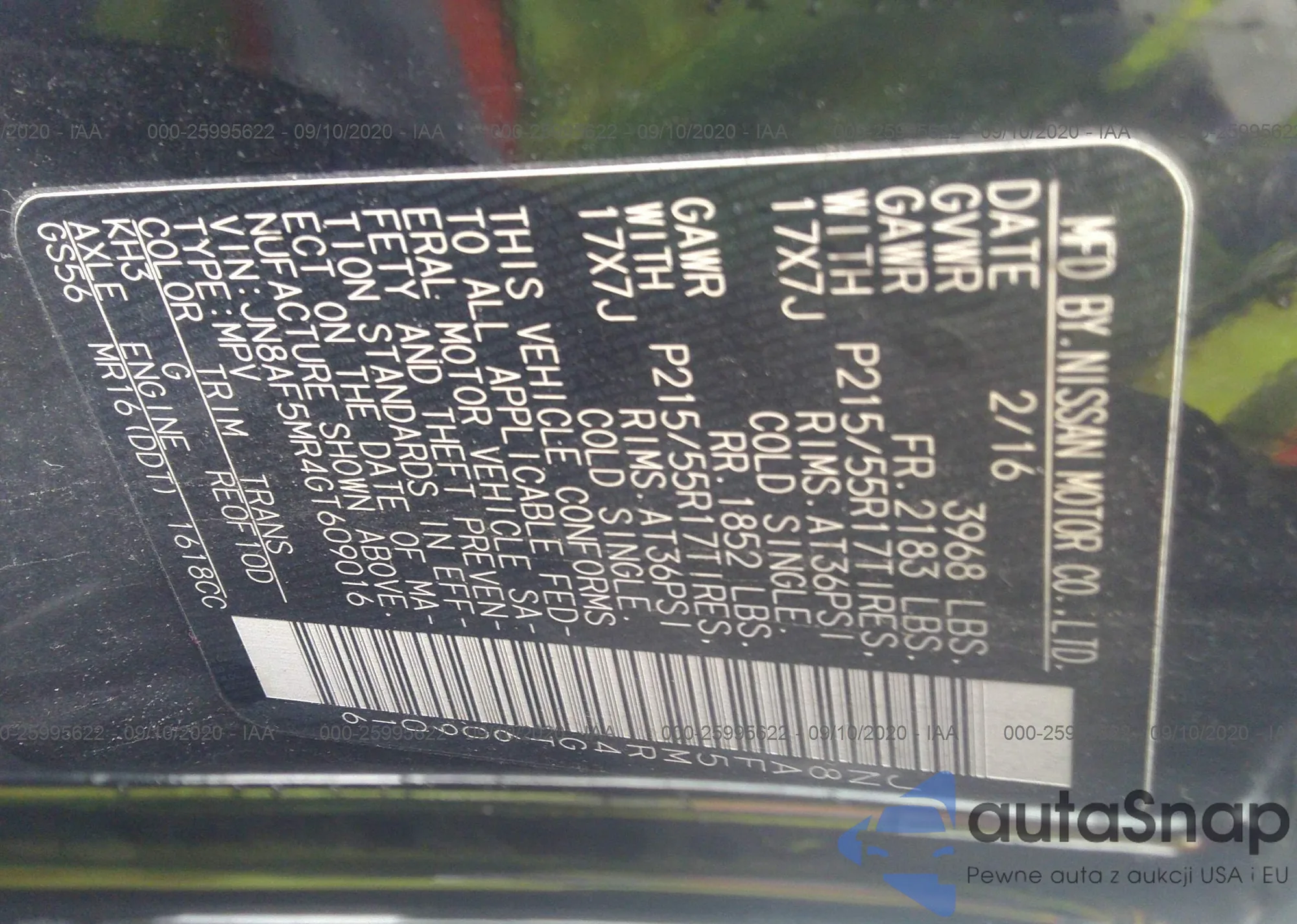 LOT: 39695236 VIN: JN8AF5MR4GT609016