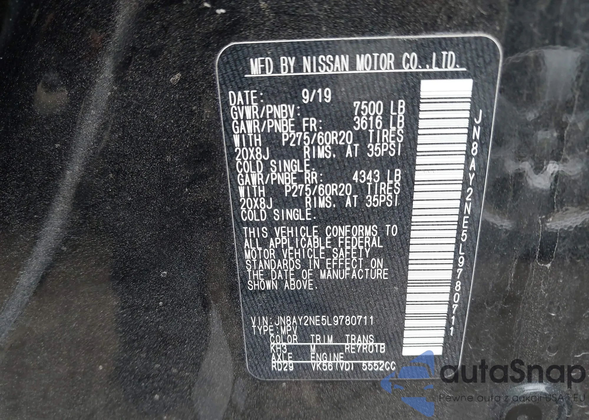 LOT: 42907556 VIN: JN8AE2KP3C9042064