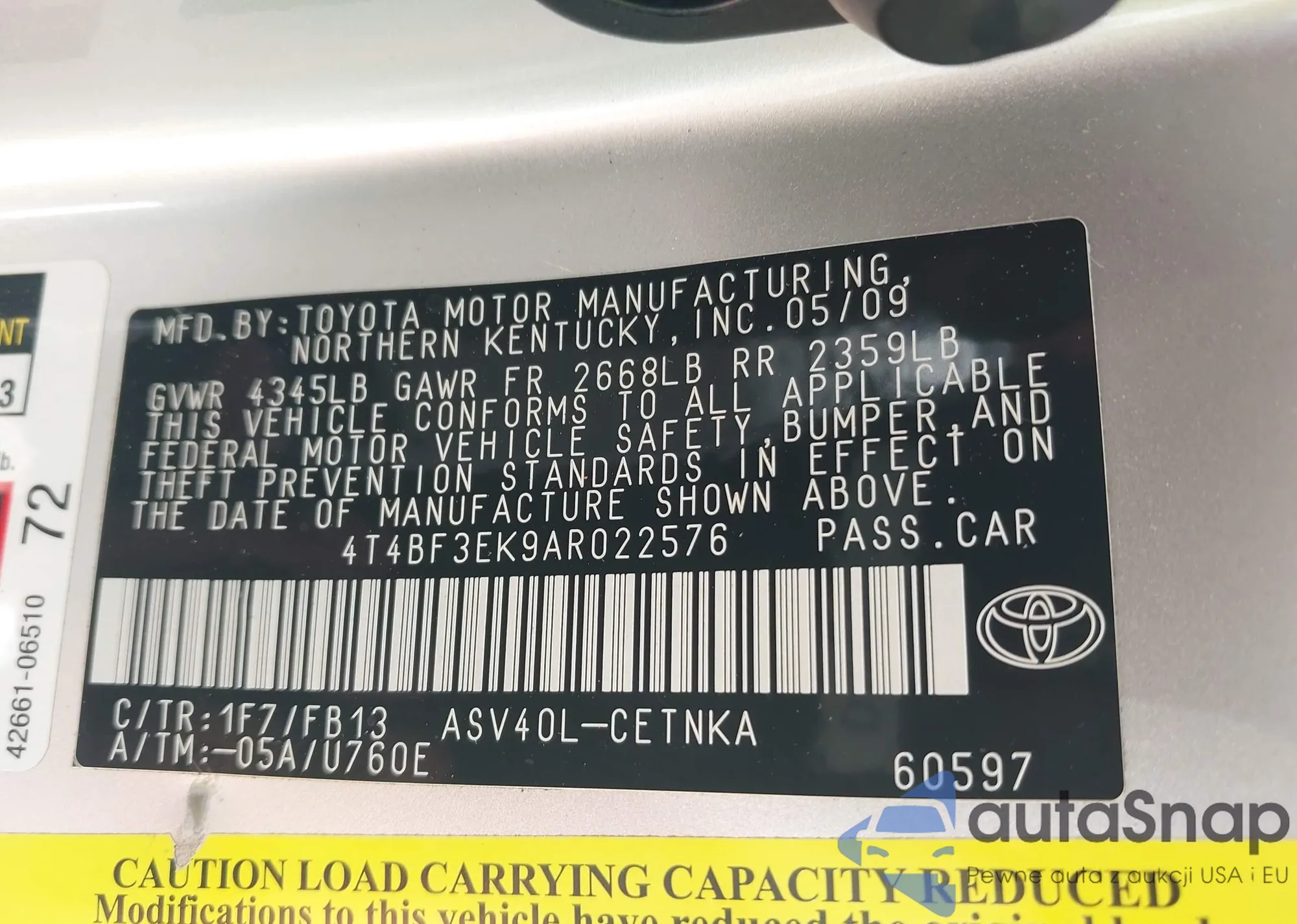• VIN 4T4BF3EK9AR022576