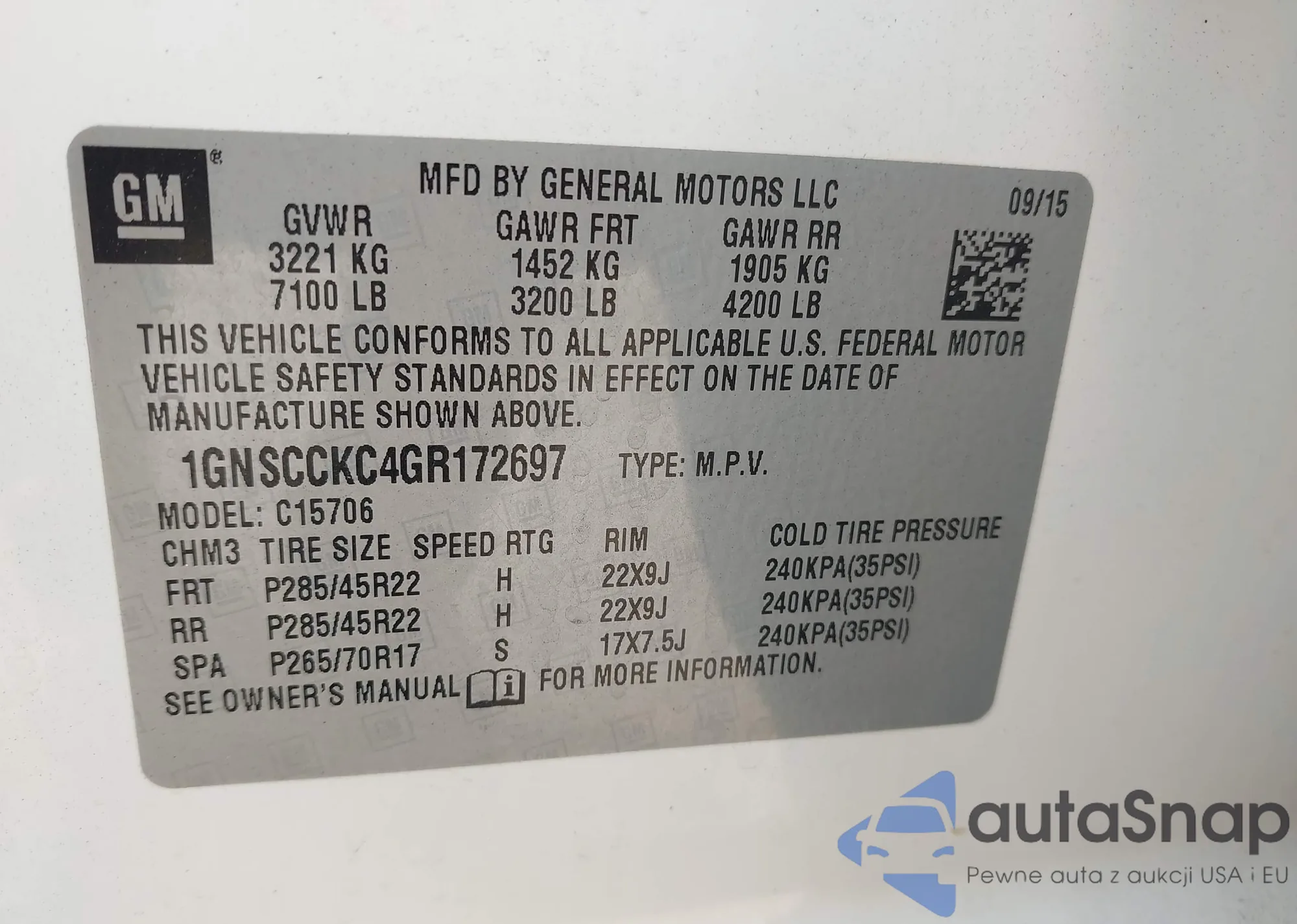 • VIN 1GNSCCKC4GR172697