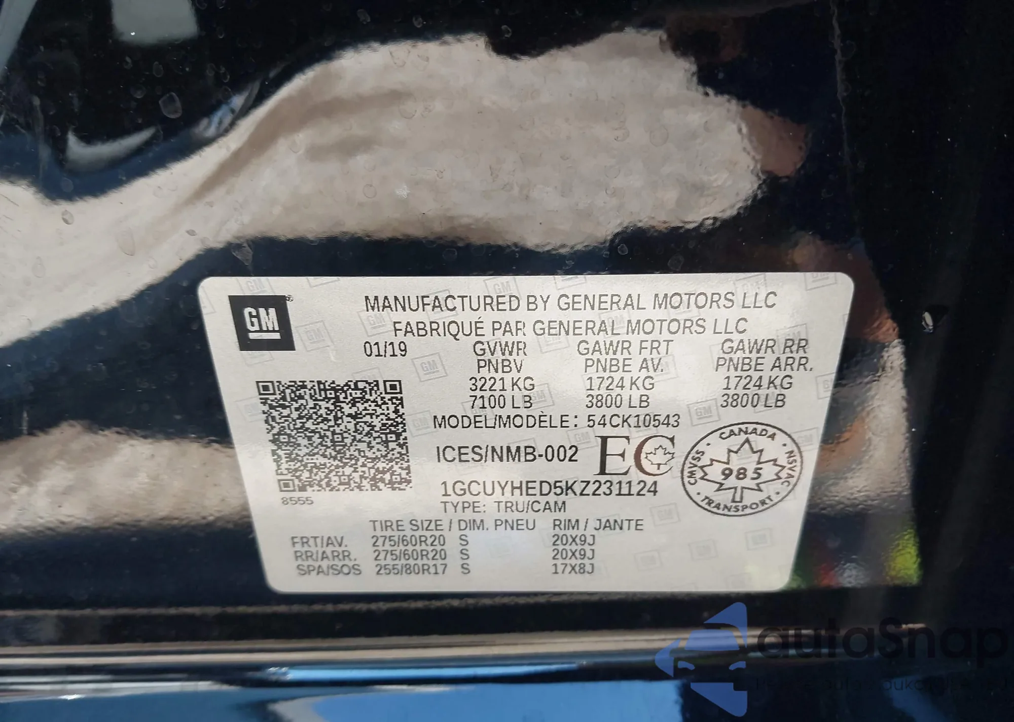LOT: 42491086 VIN: 1GCUYHED5KZ231124