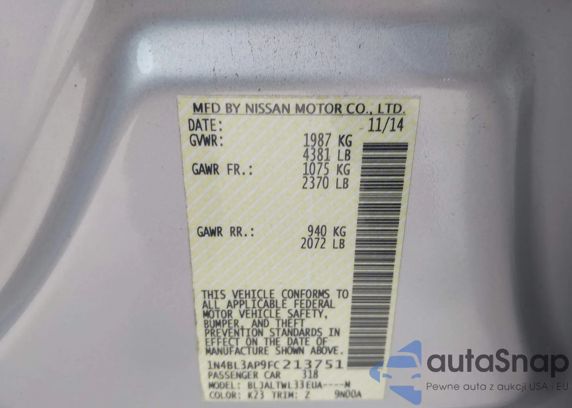 LOT: 42449498 VIN: 1N4AL3AP8EN230605