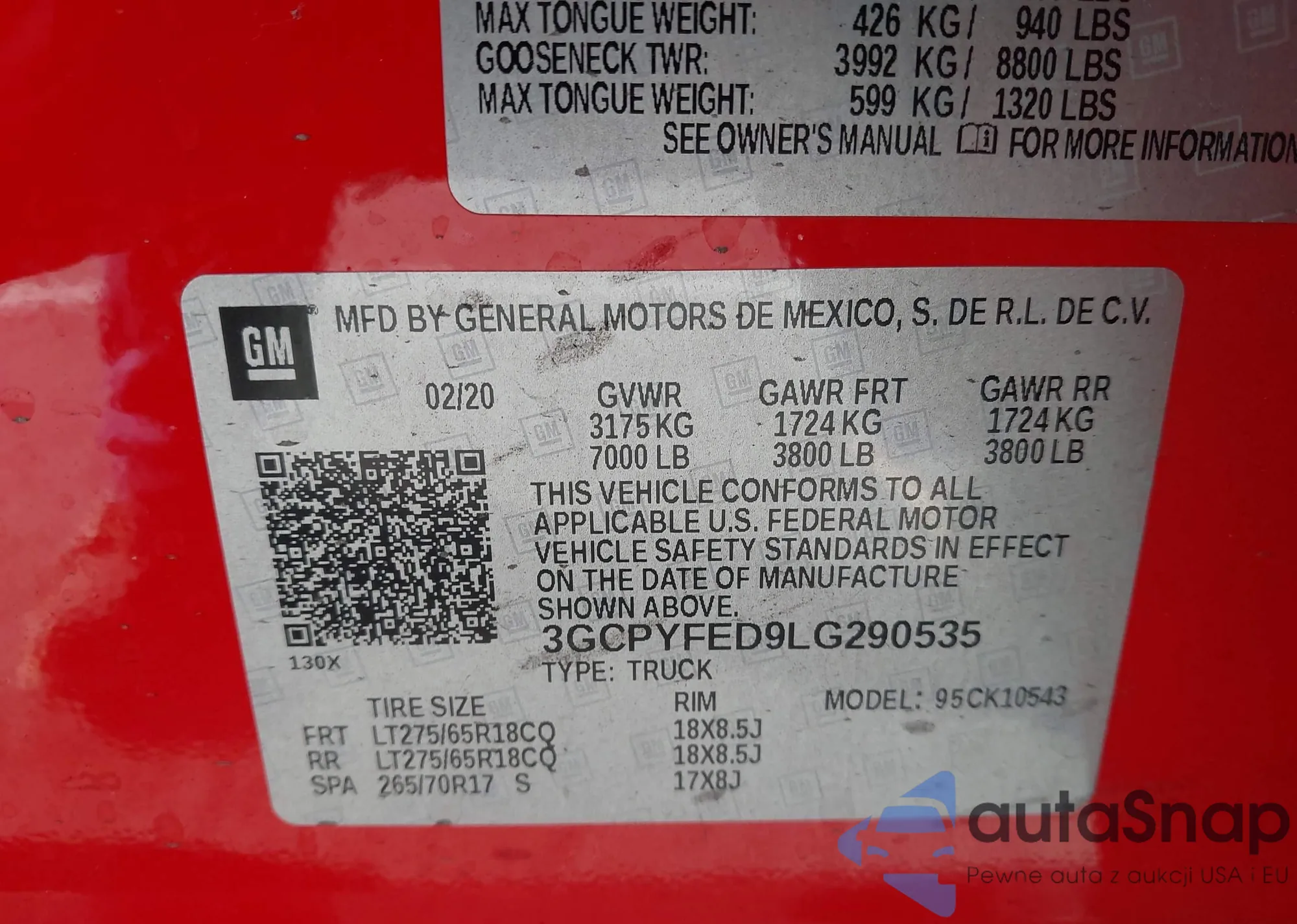 • VIN 3GCPYFED9LG290535