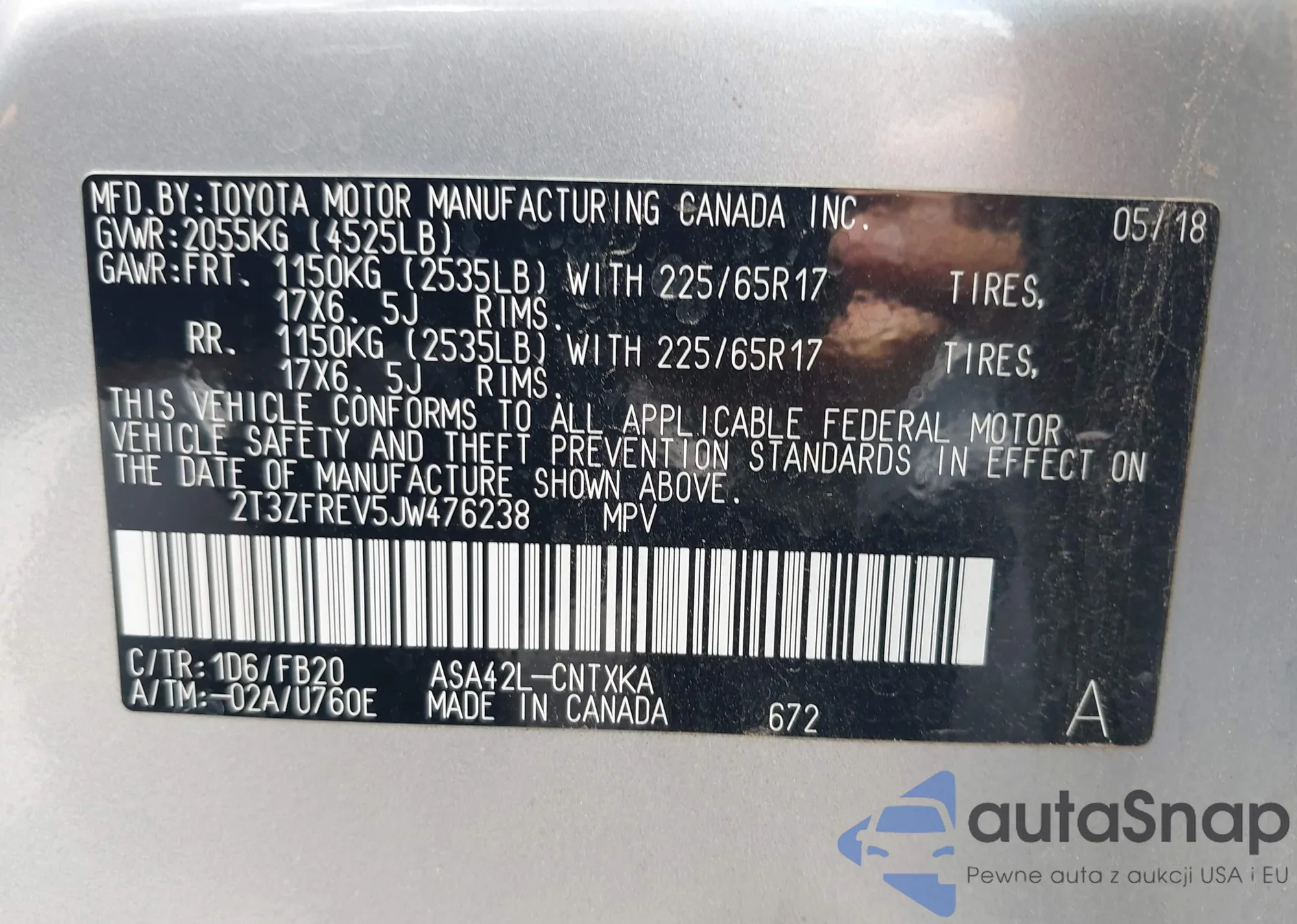 LOT: 42722308 VIN: JTNB11HK5J3012884