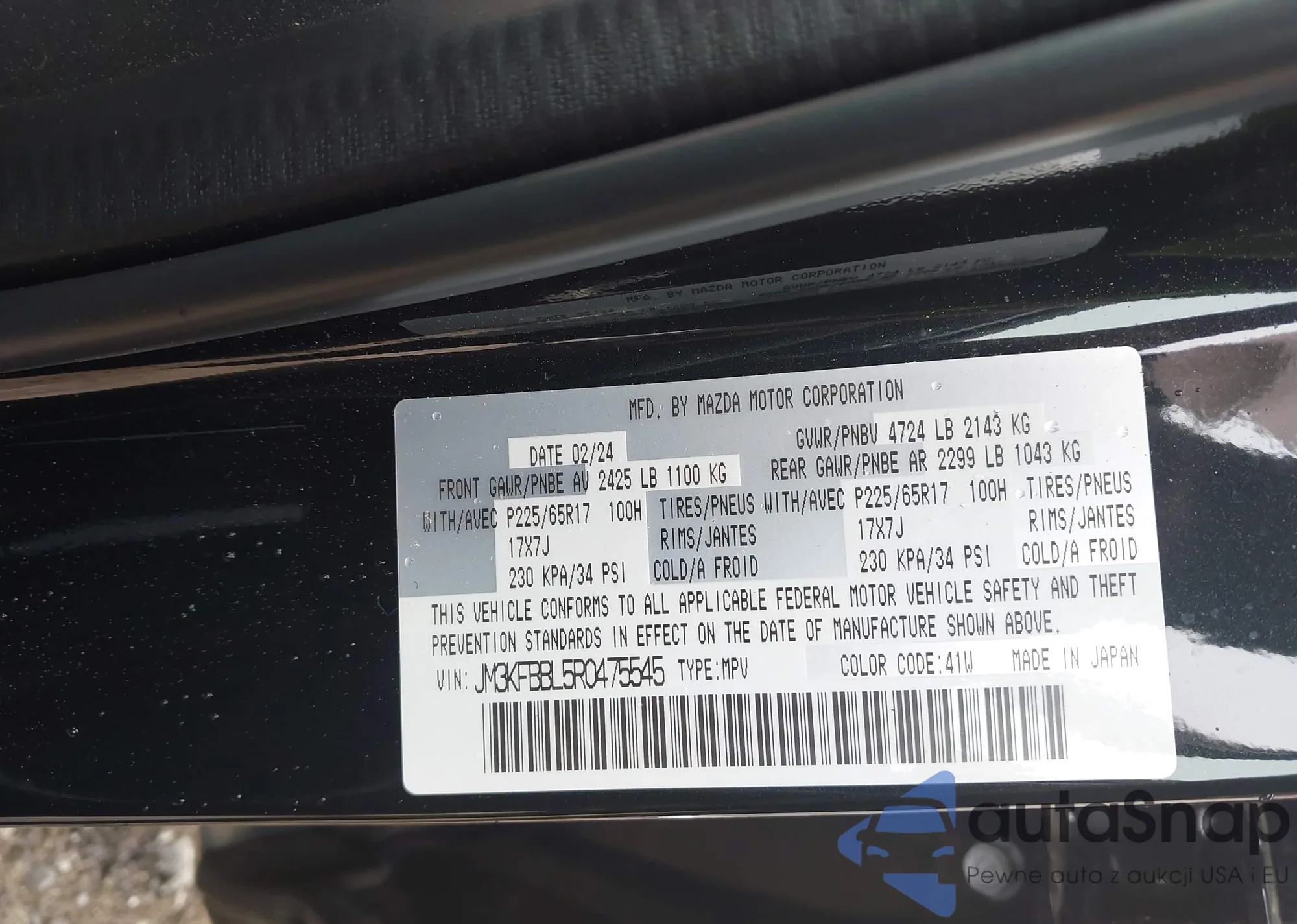 LOT: 41883270 VIN: WBAPK53549A509736