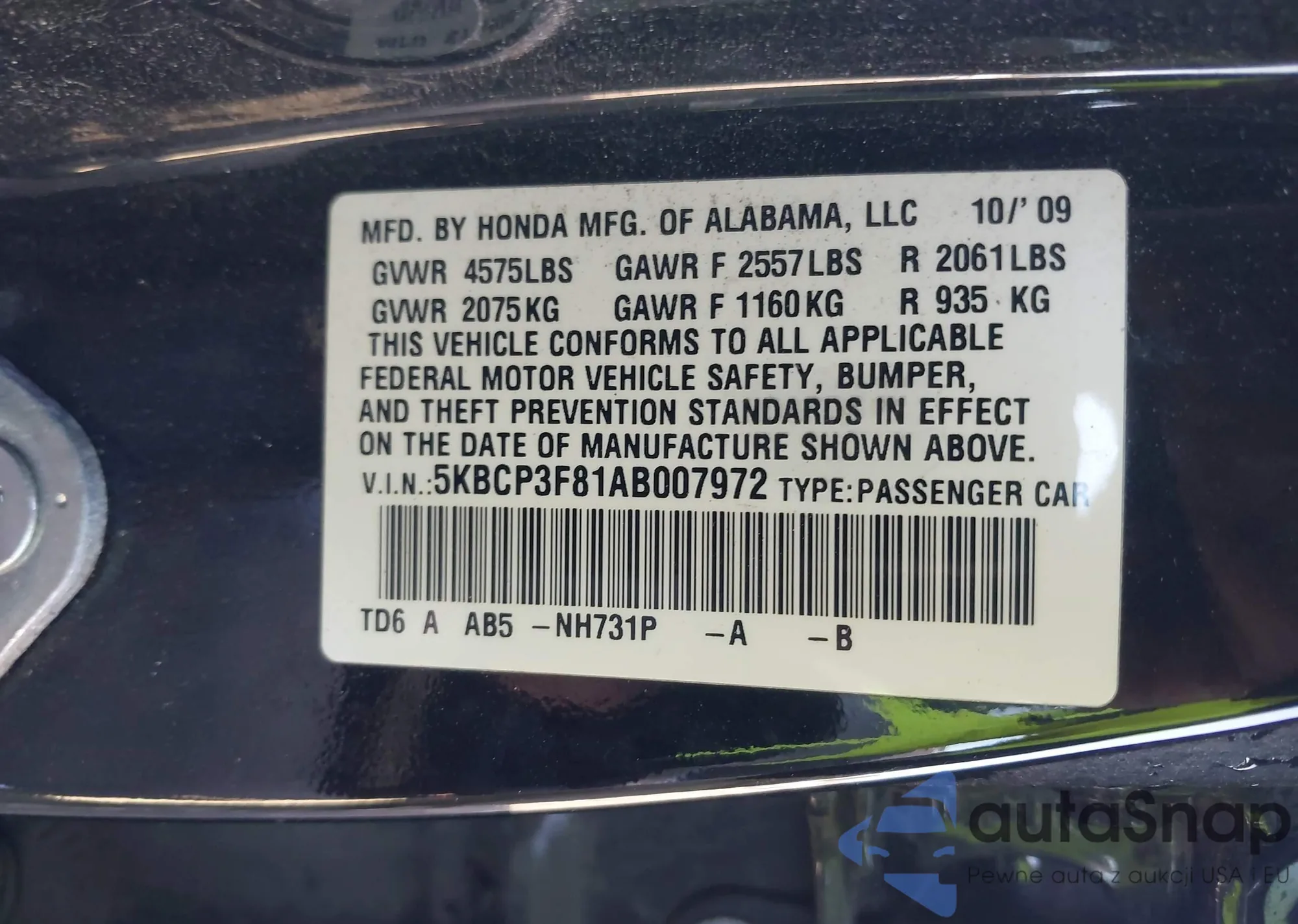 • VIN 5KBCP3F81AB007972