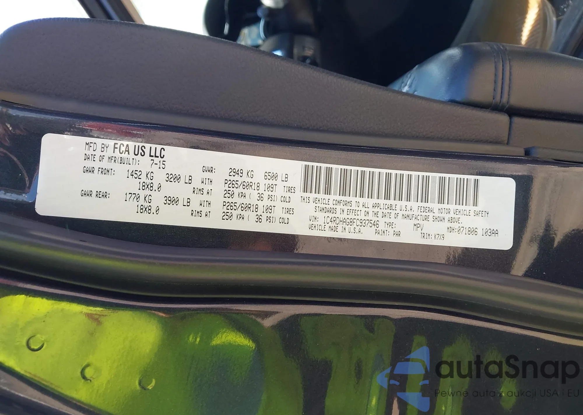 LOT: 42668358 VIN: 1C4RDHAG8FC937546