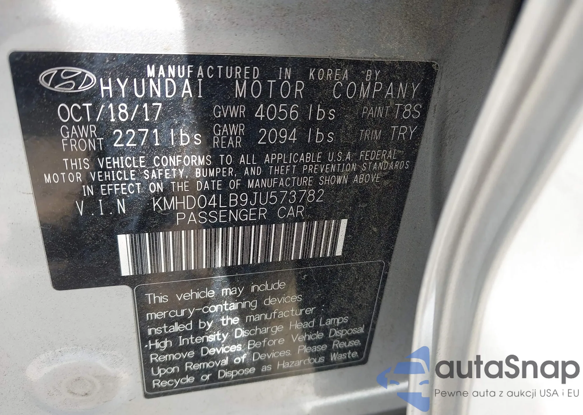 LOT: 42449038 VIN: KM8R24HE8MU203740