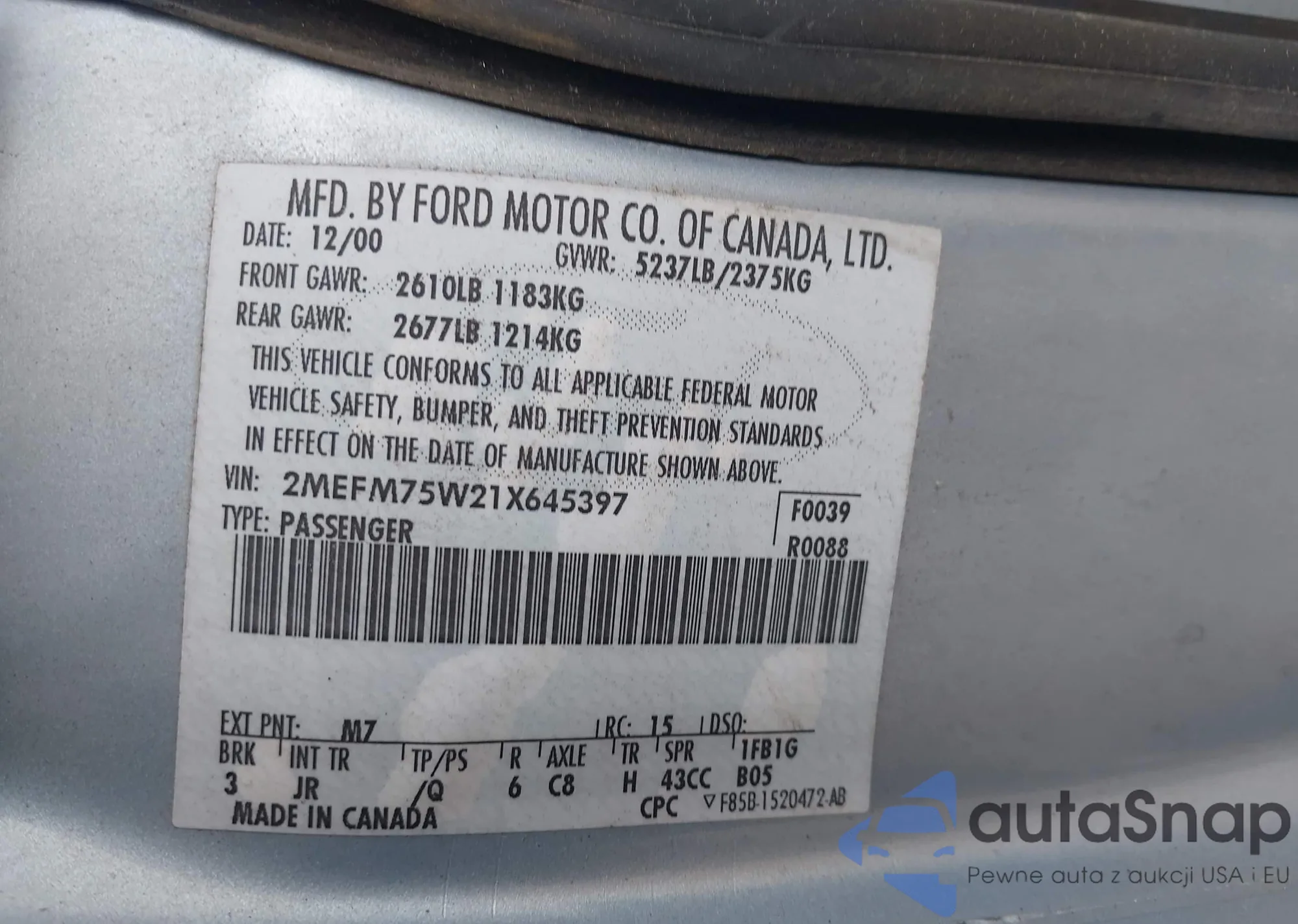 • VIN 2MEFM75W21X645397