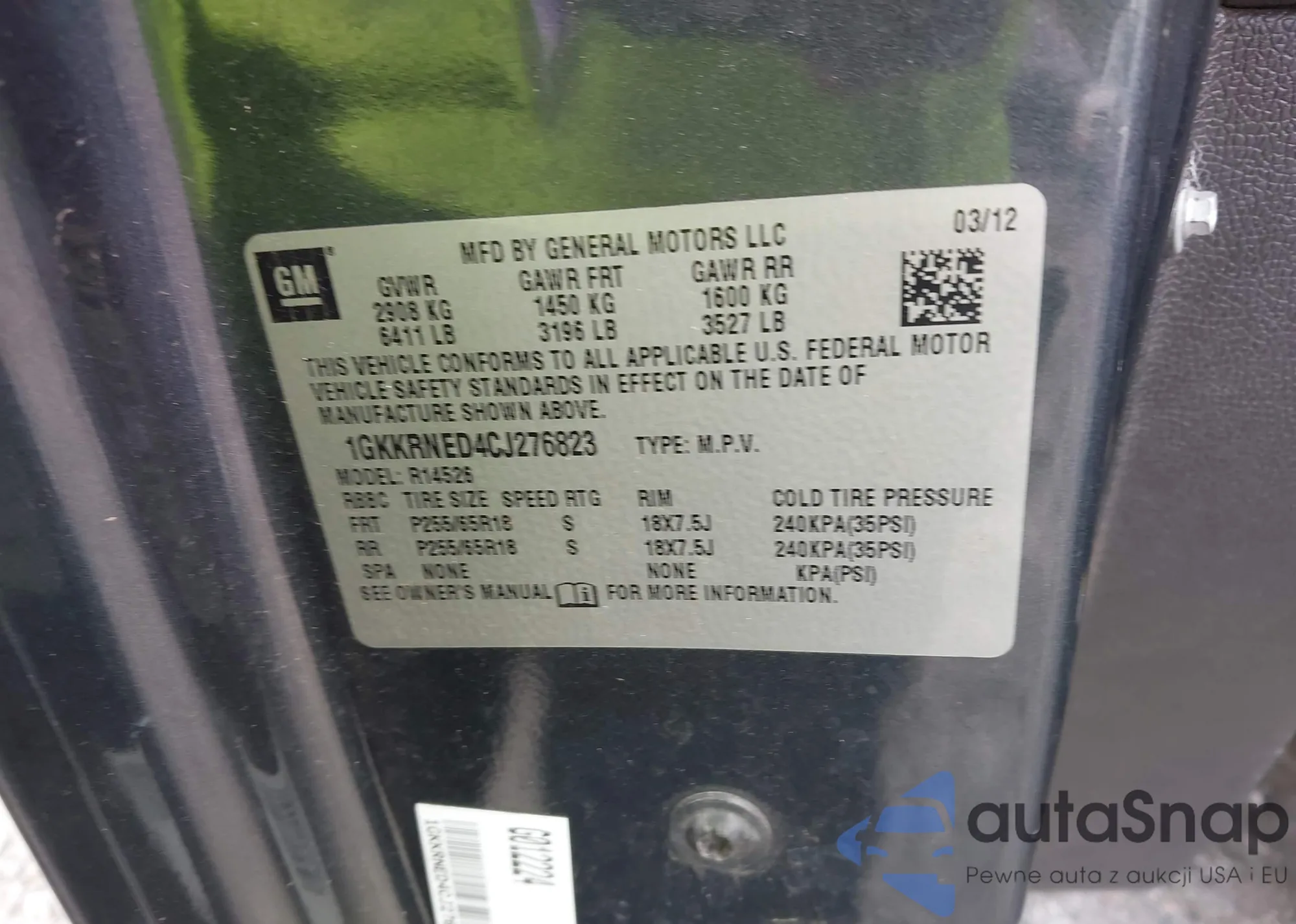 LOT: 42436687 VIN: 1GKKRNED4CJ276823