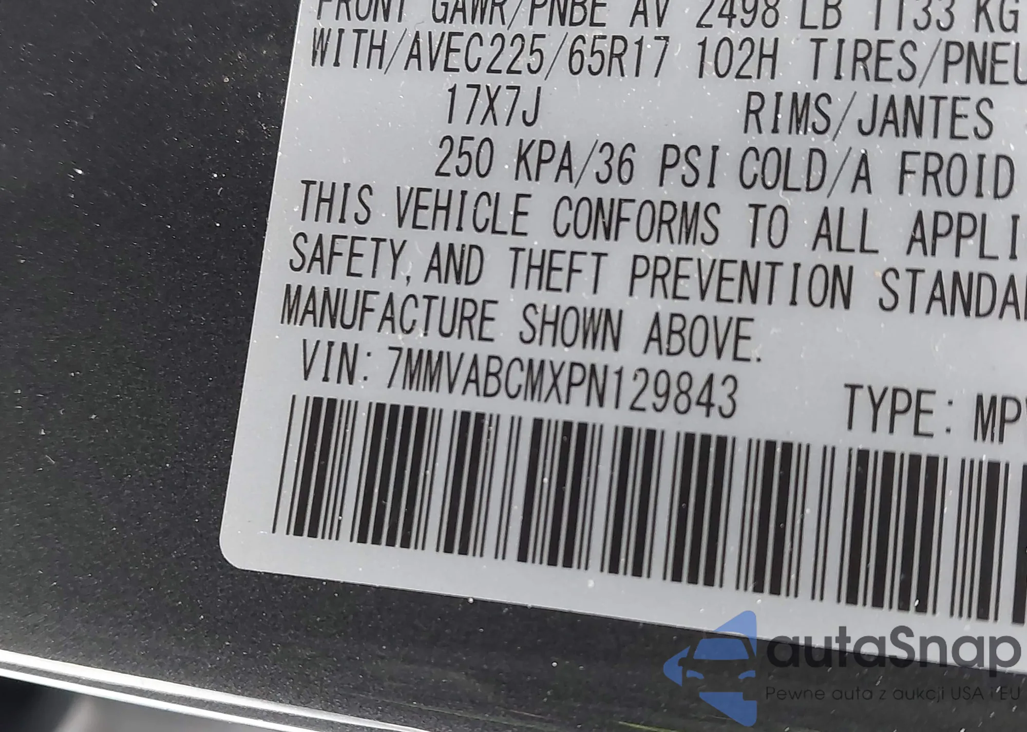 LOT: 41380185 VIN: 7MMVABCMXPN129843