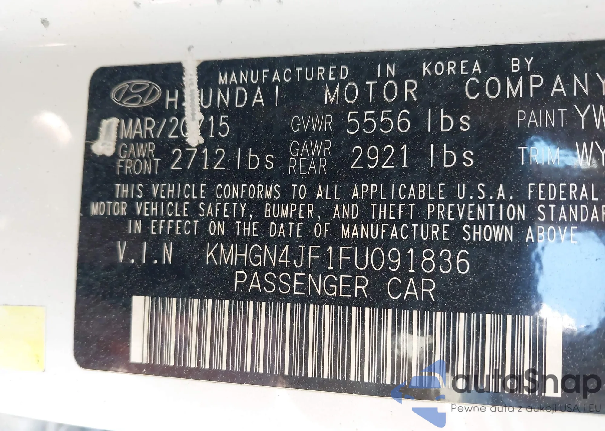LOT: 42308907 VIN: KMHGN4JF1FU091836