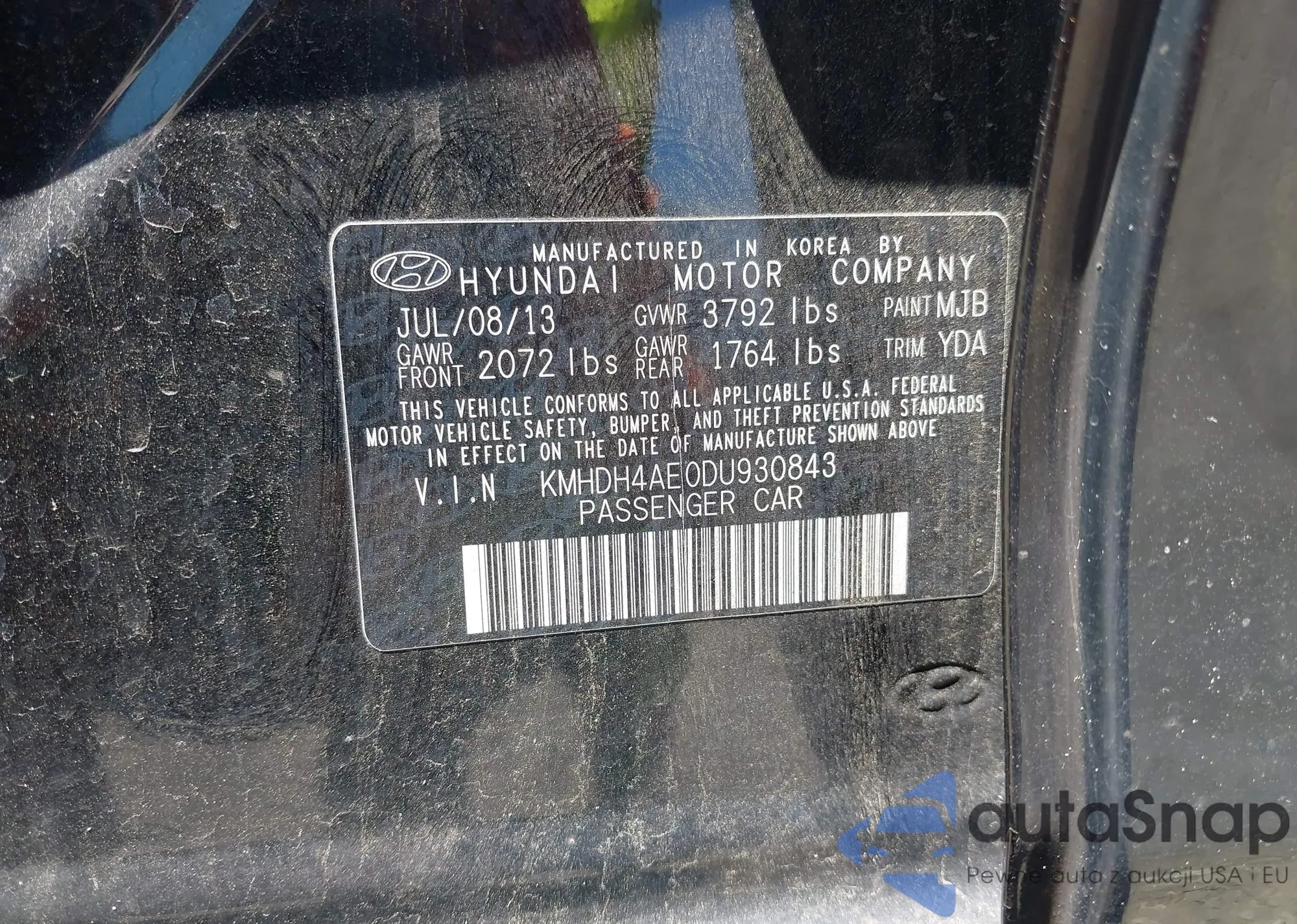 LOT: 42388755 VIN: KMHDH4AE0DU930843