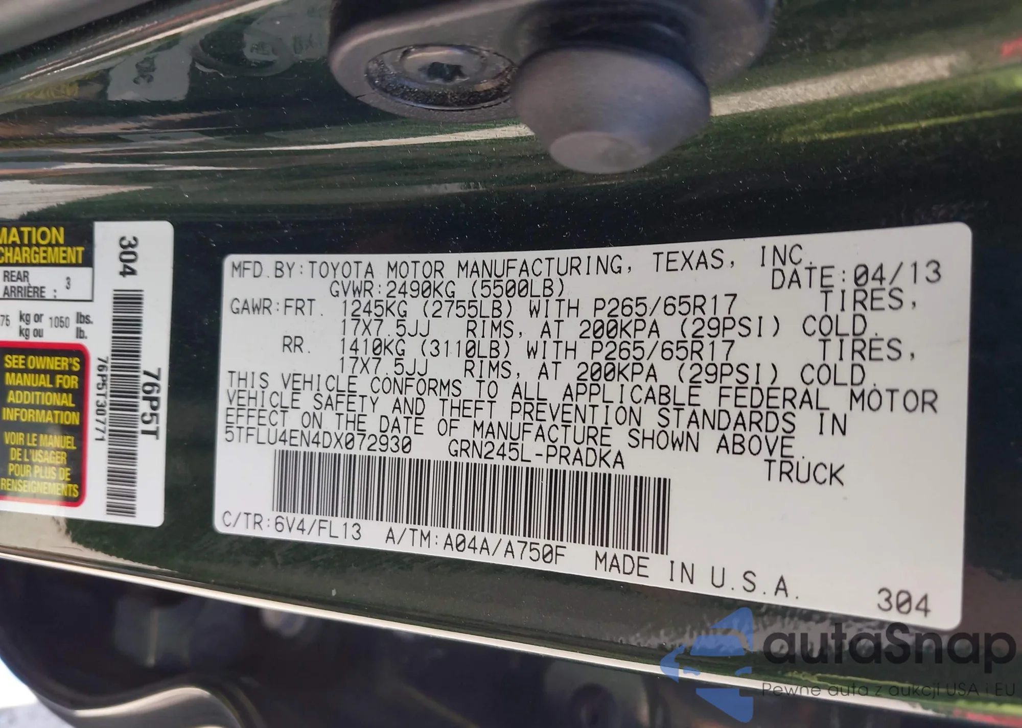 • VIN KMHDH4AE0DU930843