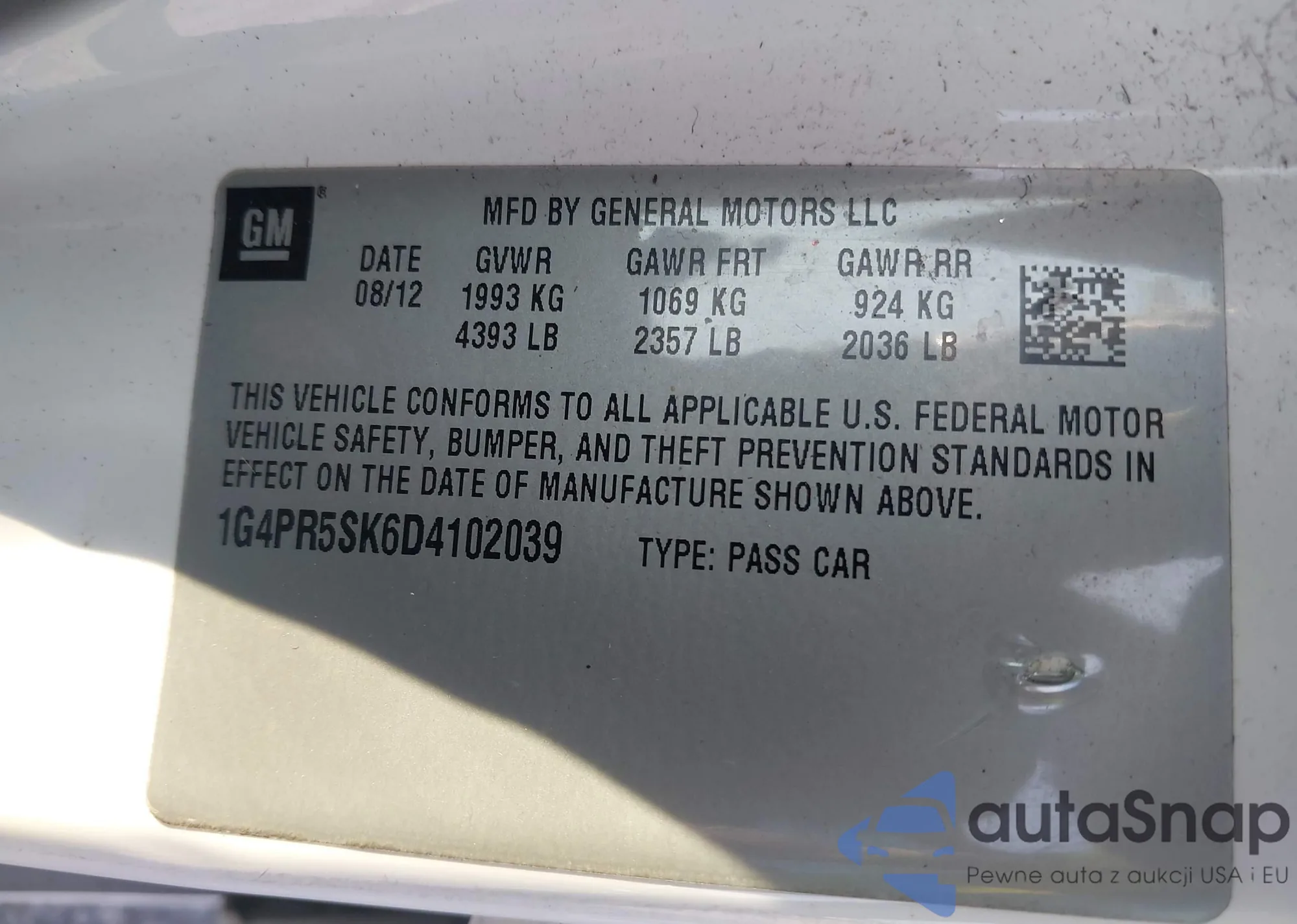 LOT: 42712297 VIN: KM8J2CA46KU883904