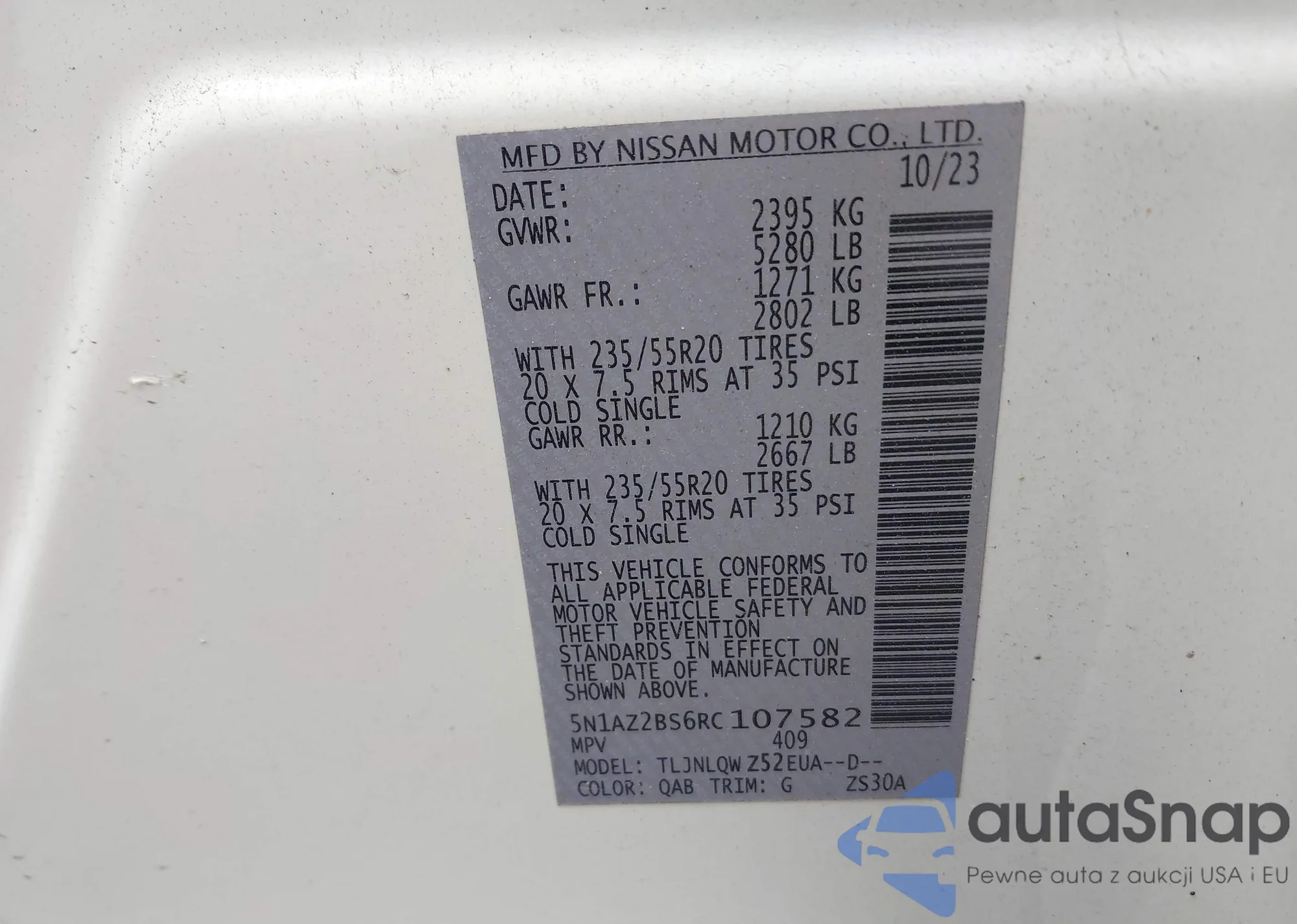 • VIN 5N1AZ2BS6RC107582