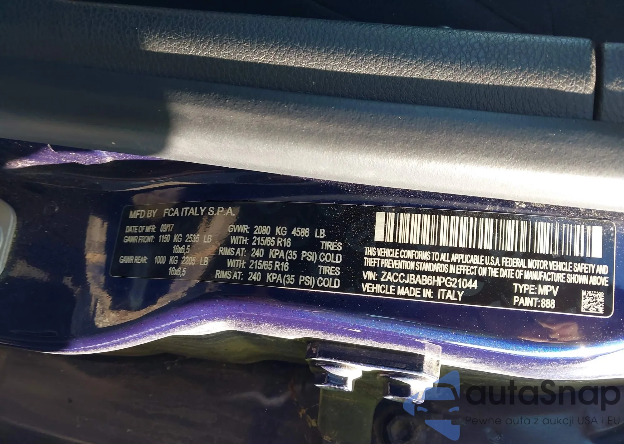 • VIN ZACCJBAB6HPG21044