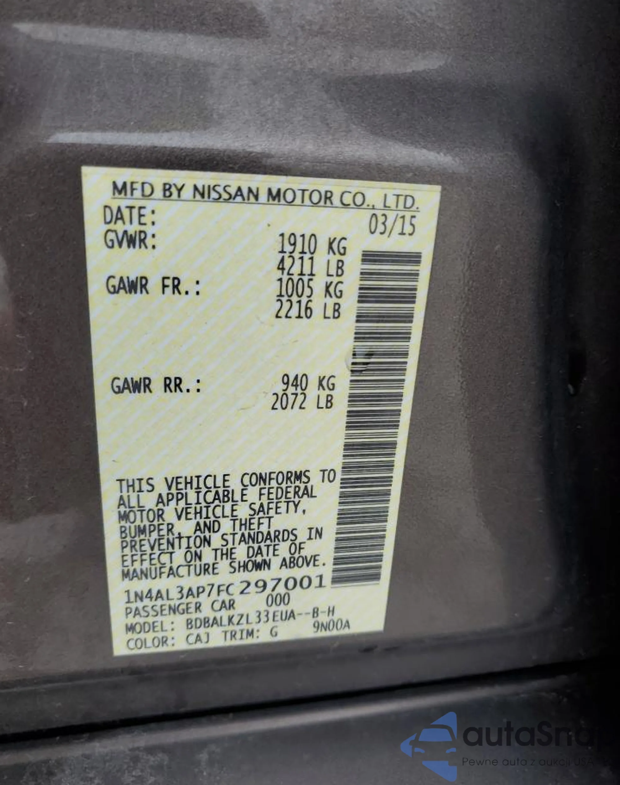 • VIN 1N4AL3AP7FC297001