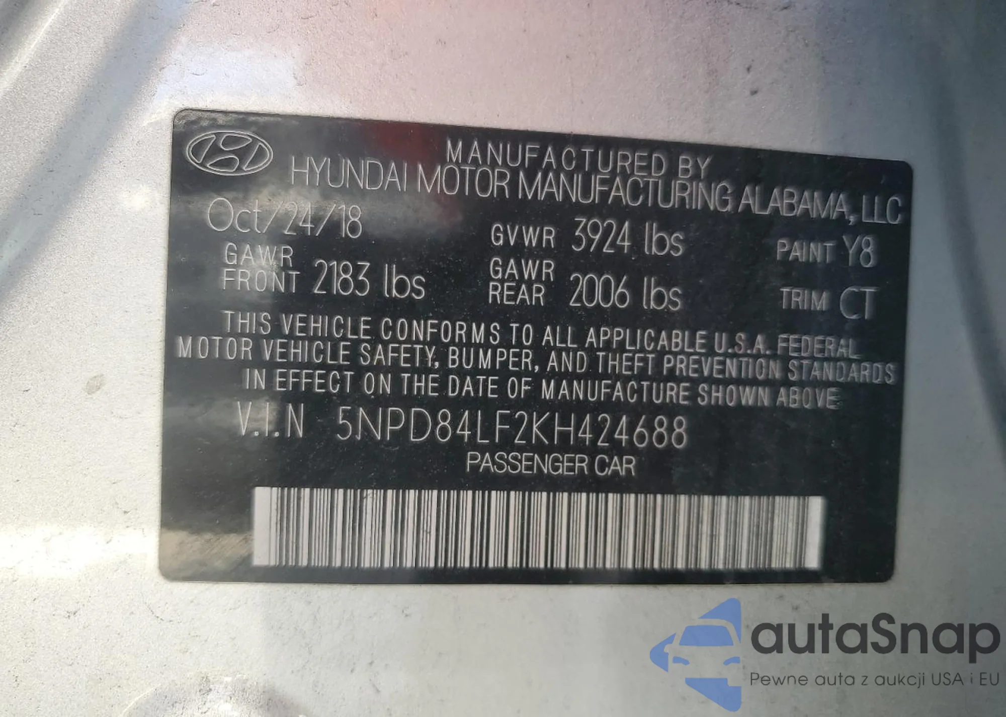 • VIN 5NPD84LF2KH424688