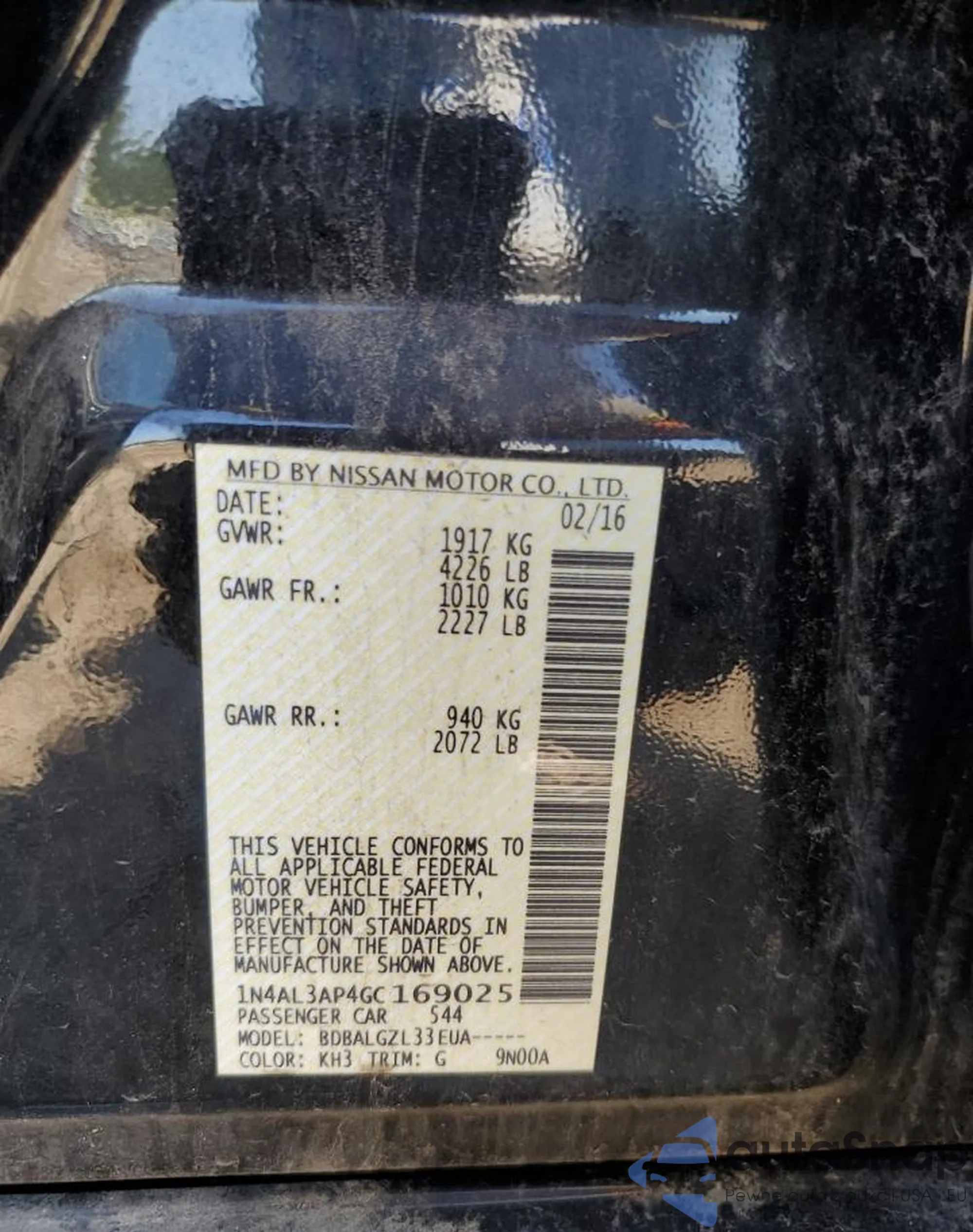 • VIN 1N4AL3AP4GC169025