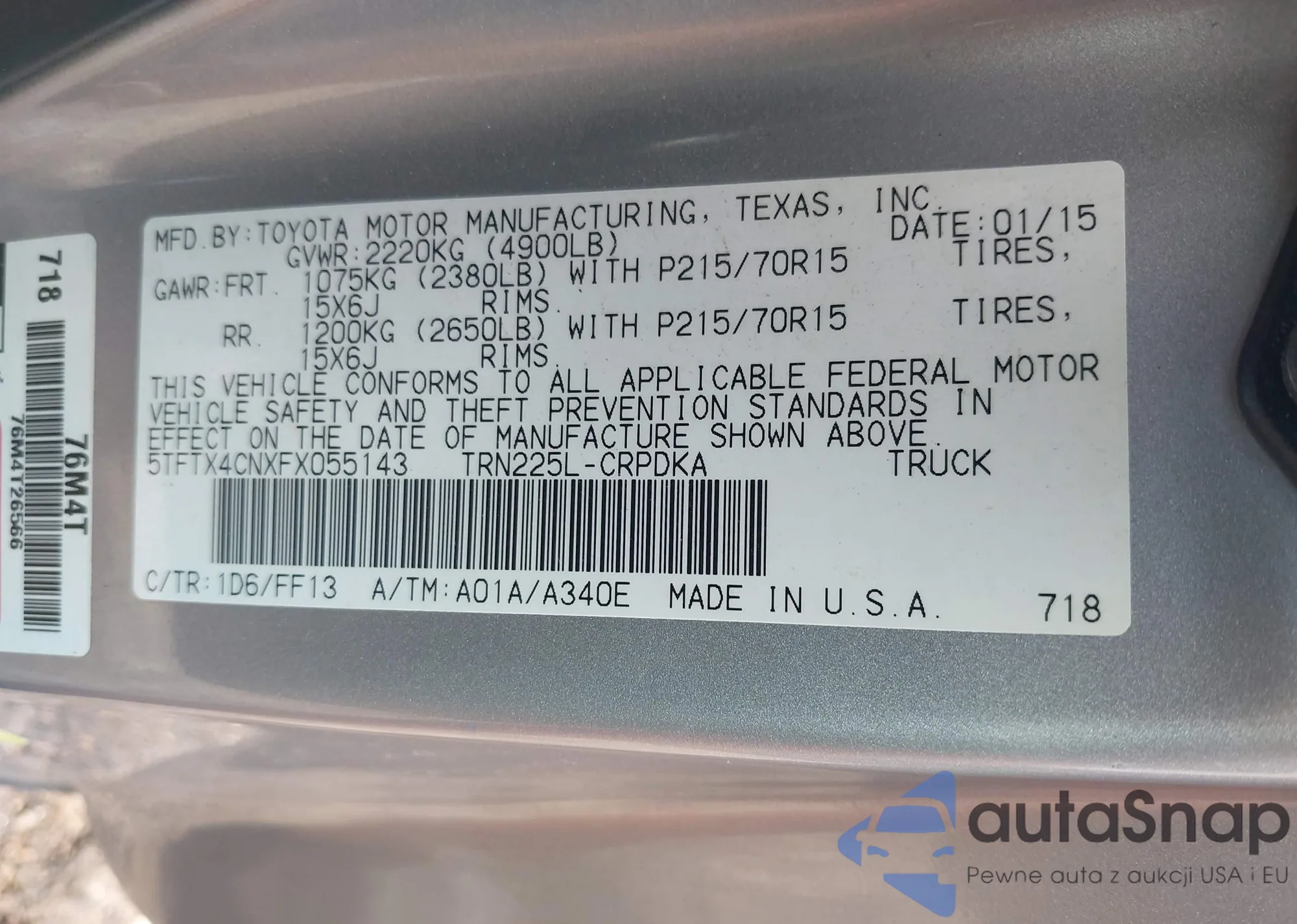 • VIN 5TFTX4CNXFX055143