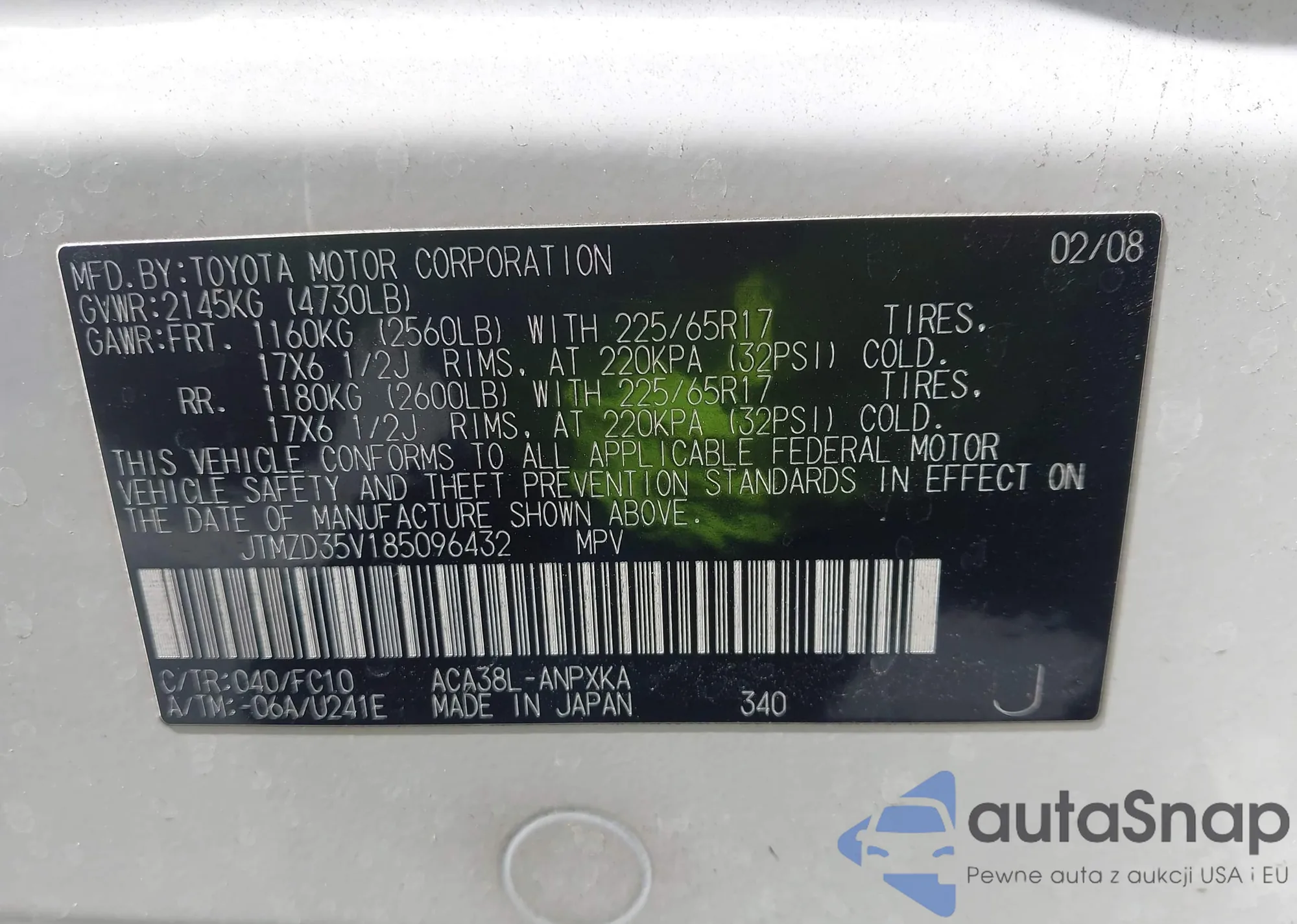 LOT: 42563984 VIN: JTMZD35V185096432