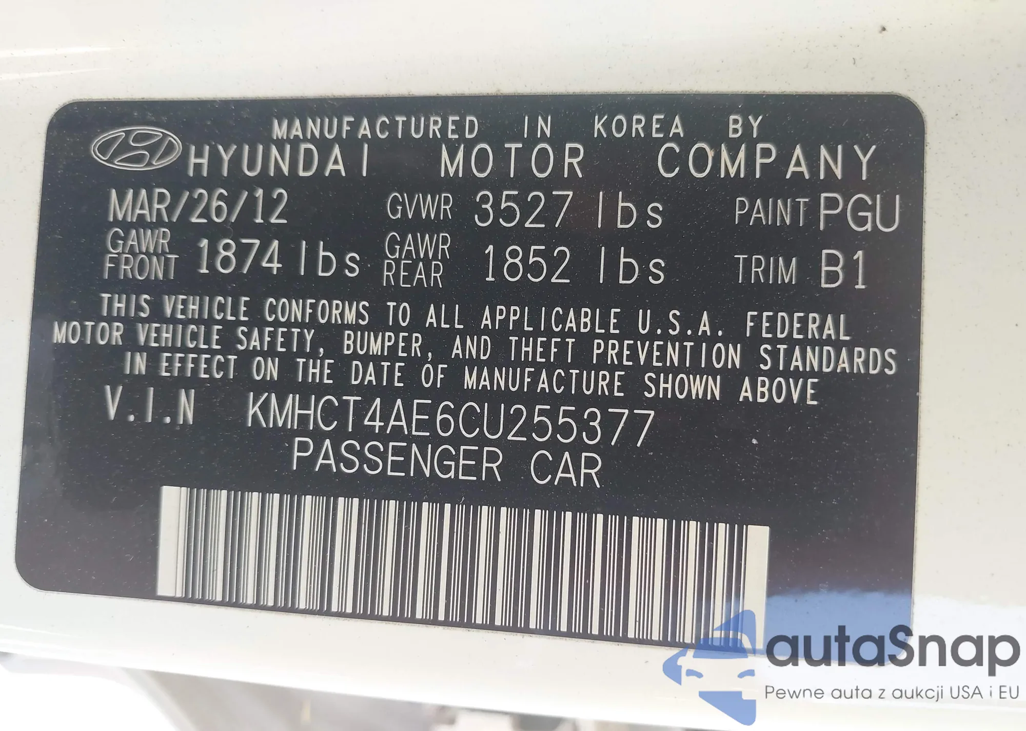 • VIN KMHCT4AE6CU255377