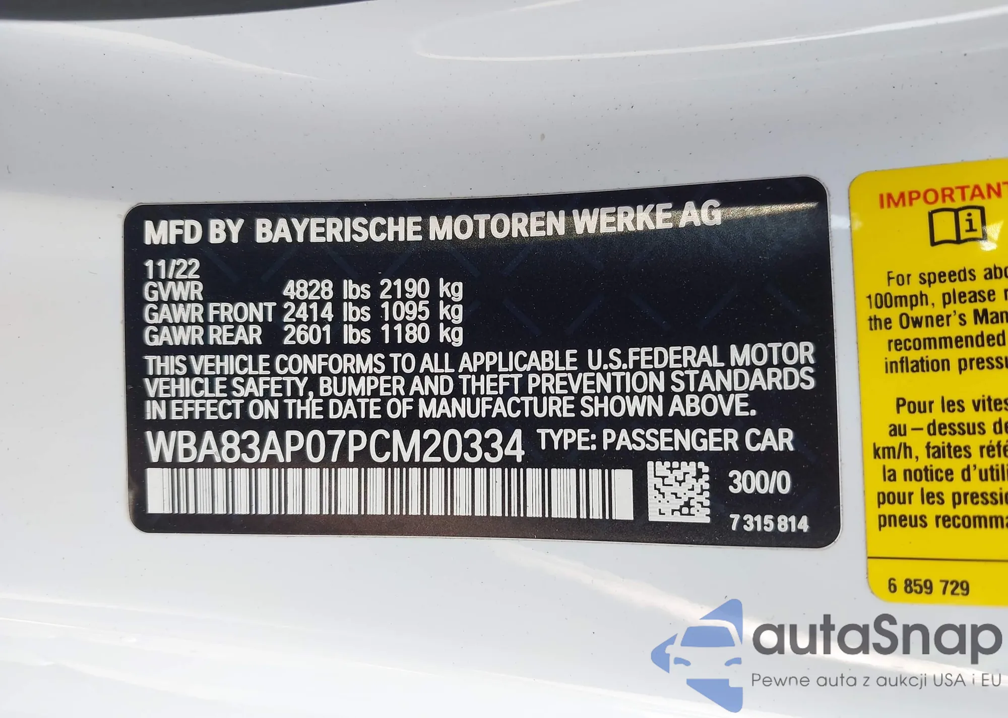 LOT: 42899176 VIN: WBA83AP07PCM20334