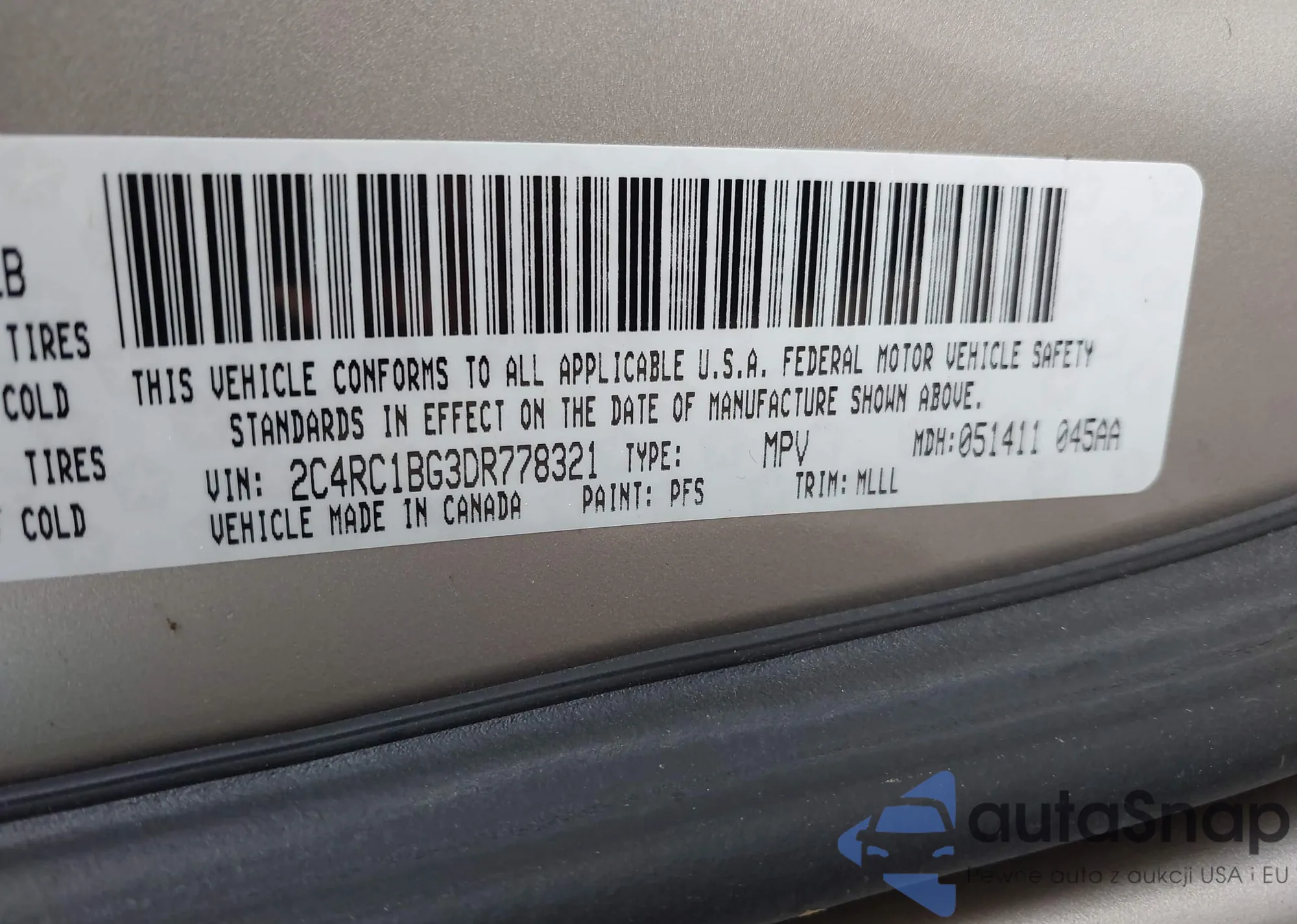 • VIN 2C4RC1BG3DR778321