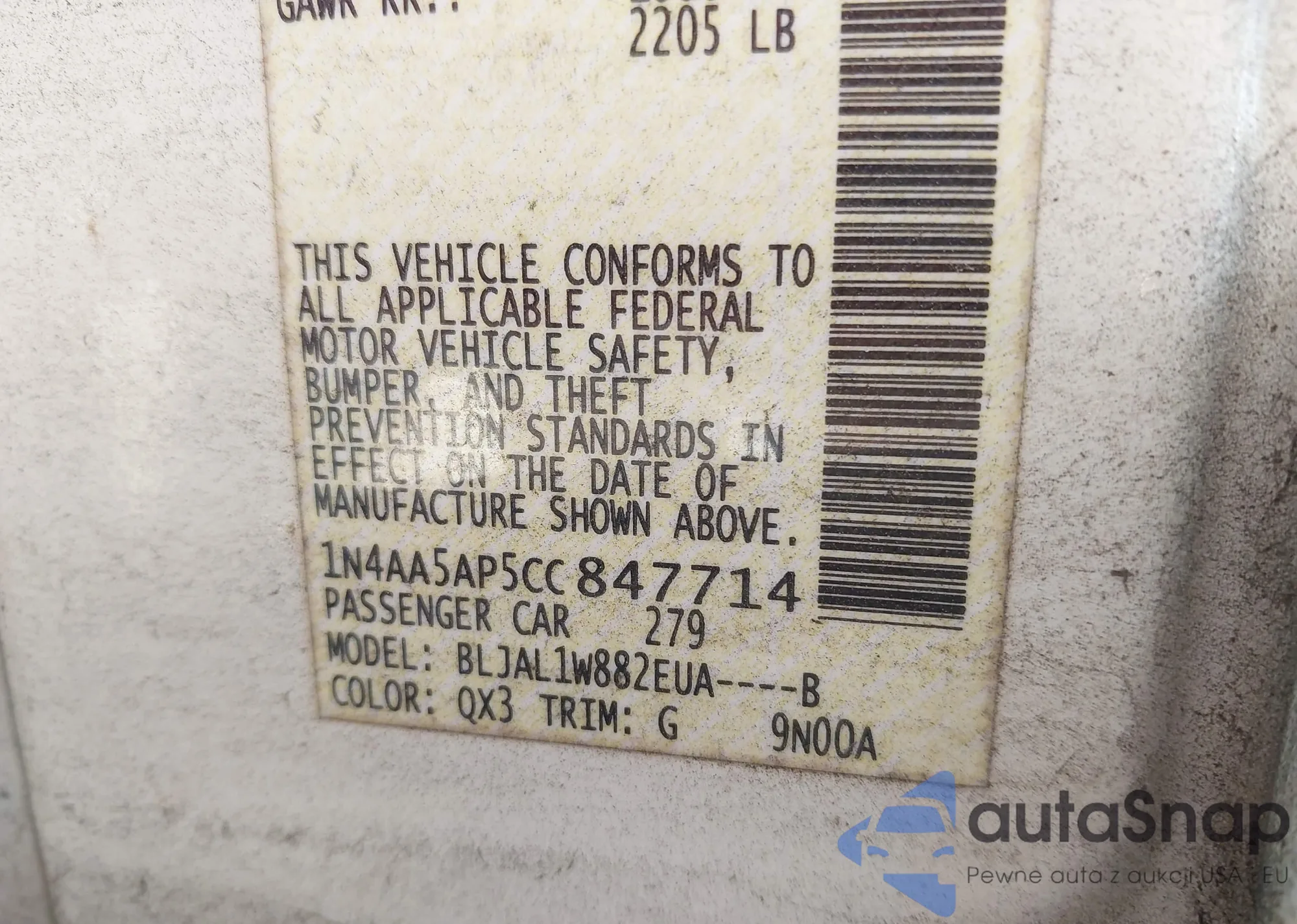 • VIN 1N4AA5AP5CC847714