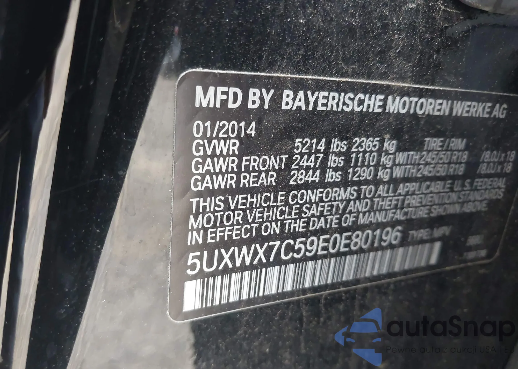 • VIN 5UXWX7C59E0E80196