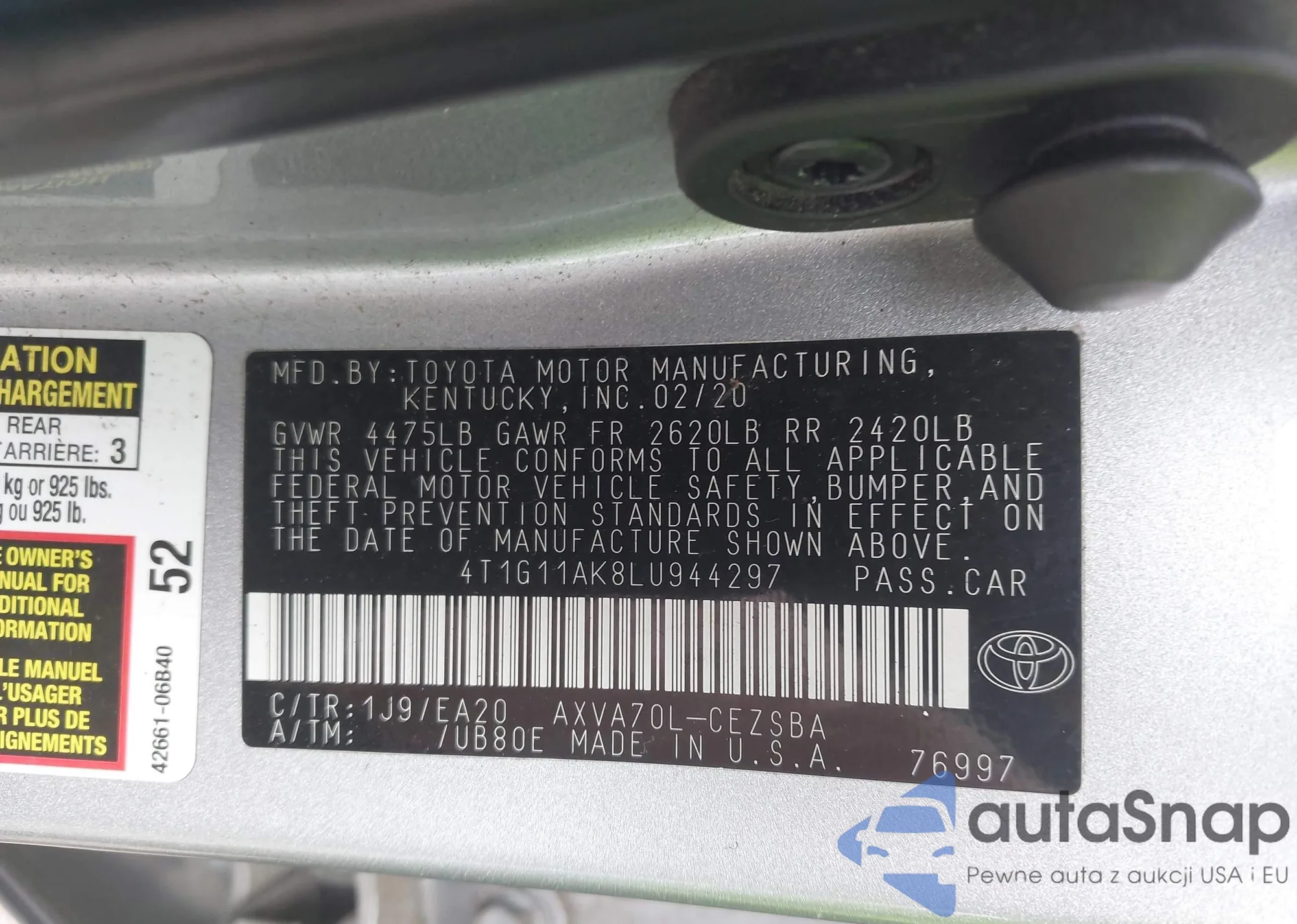 LOT: 42887756 VIN: 4T1G11AK8LU944297