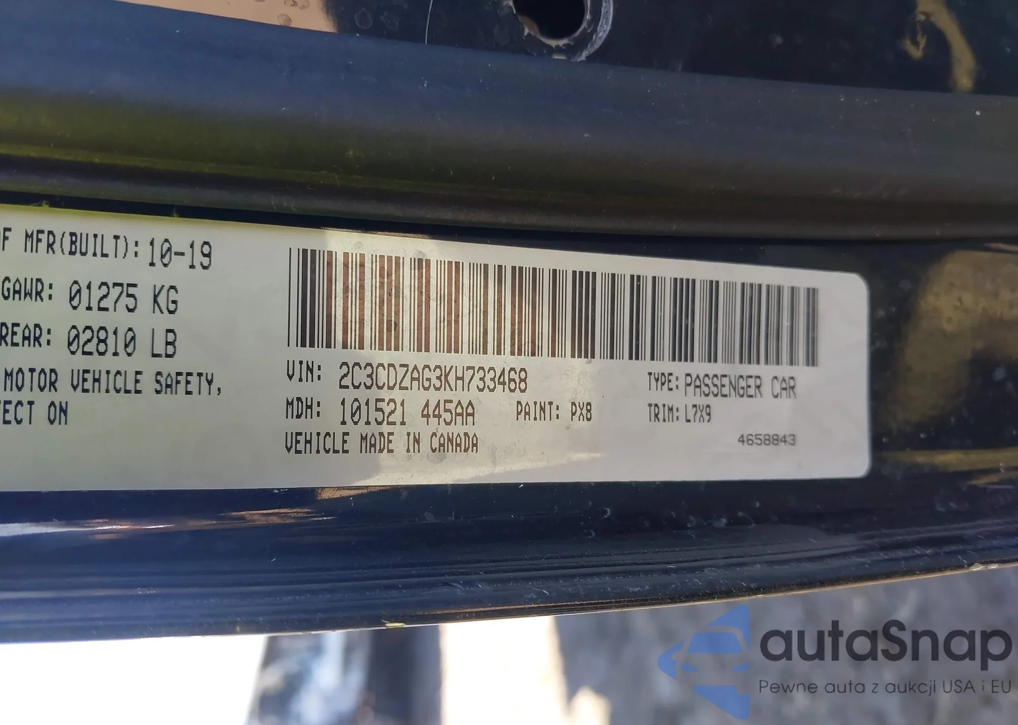 • VIN 2C3CDZAG3KH733468
