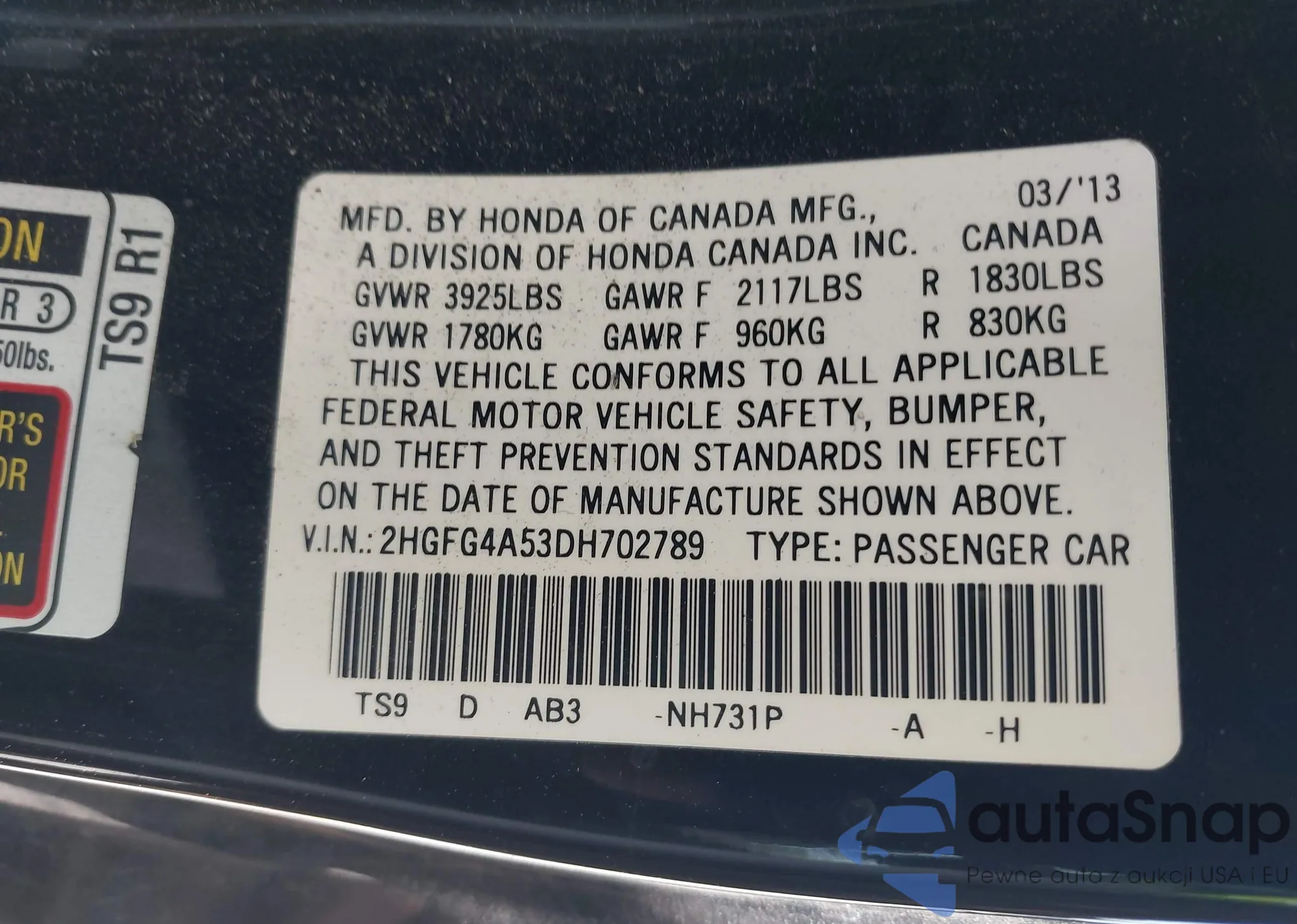 • VIN 2HGFG4A53DH702789