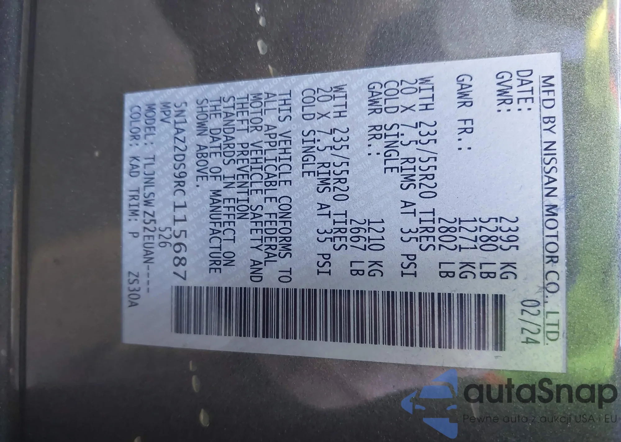 • VIN 5N1AZ2DS9RC115687