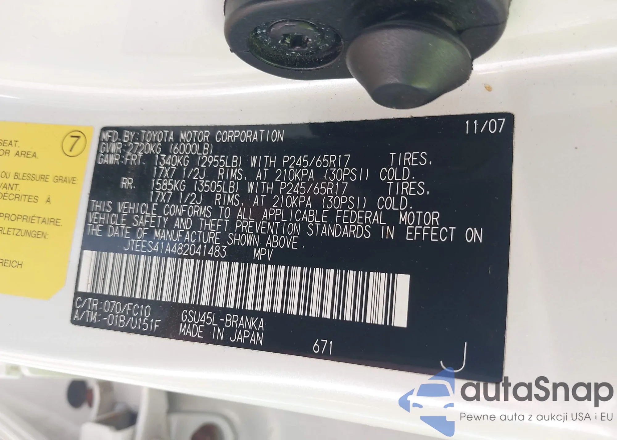 LOT: 42909472 VIN: 1NXBR32E87Z873793