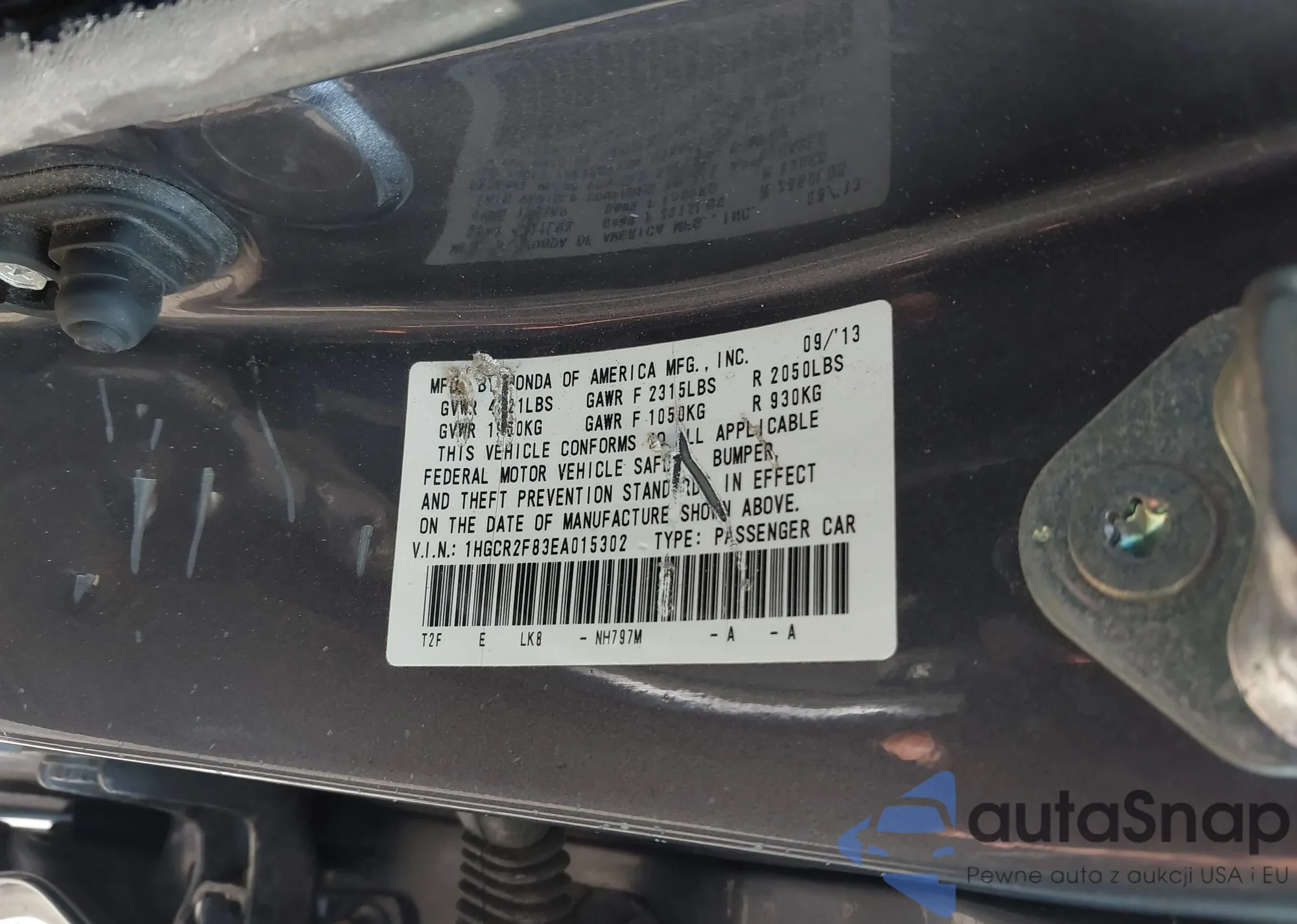 LOT: 42871854 VIN: 1HGCR2F83EA015302