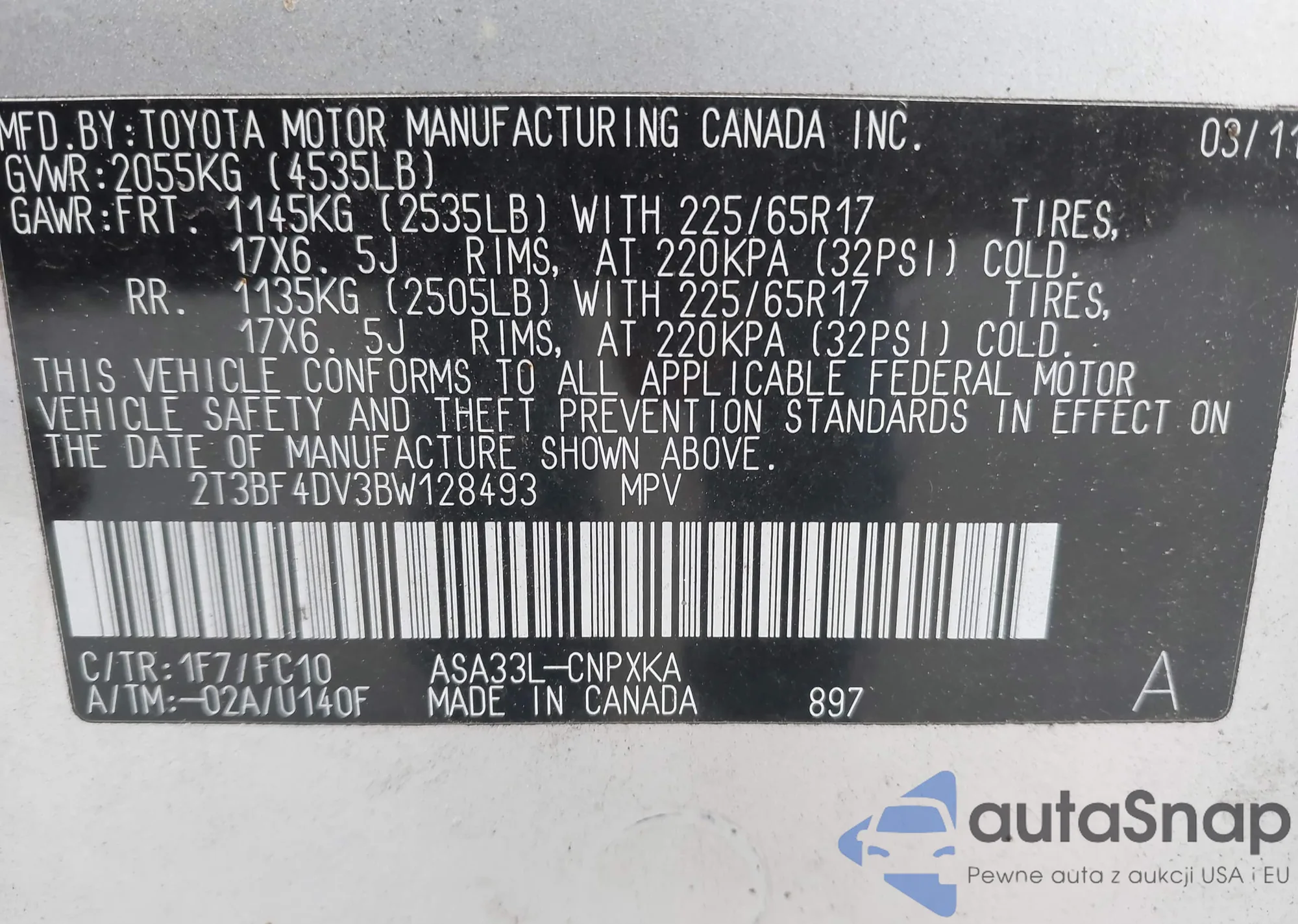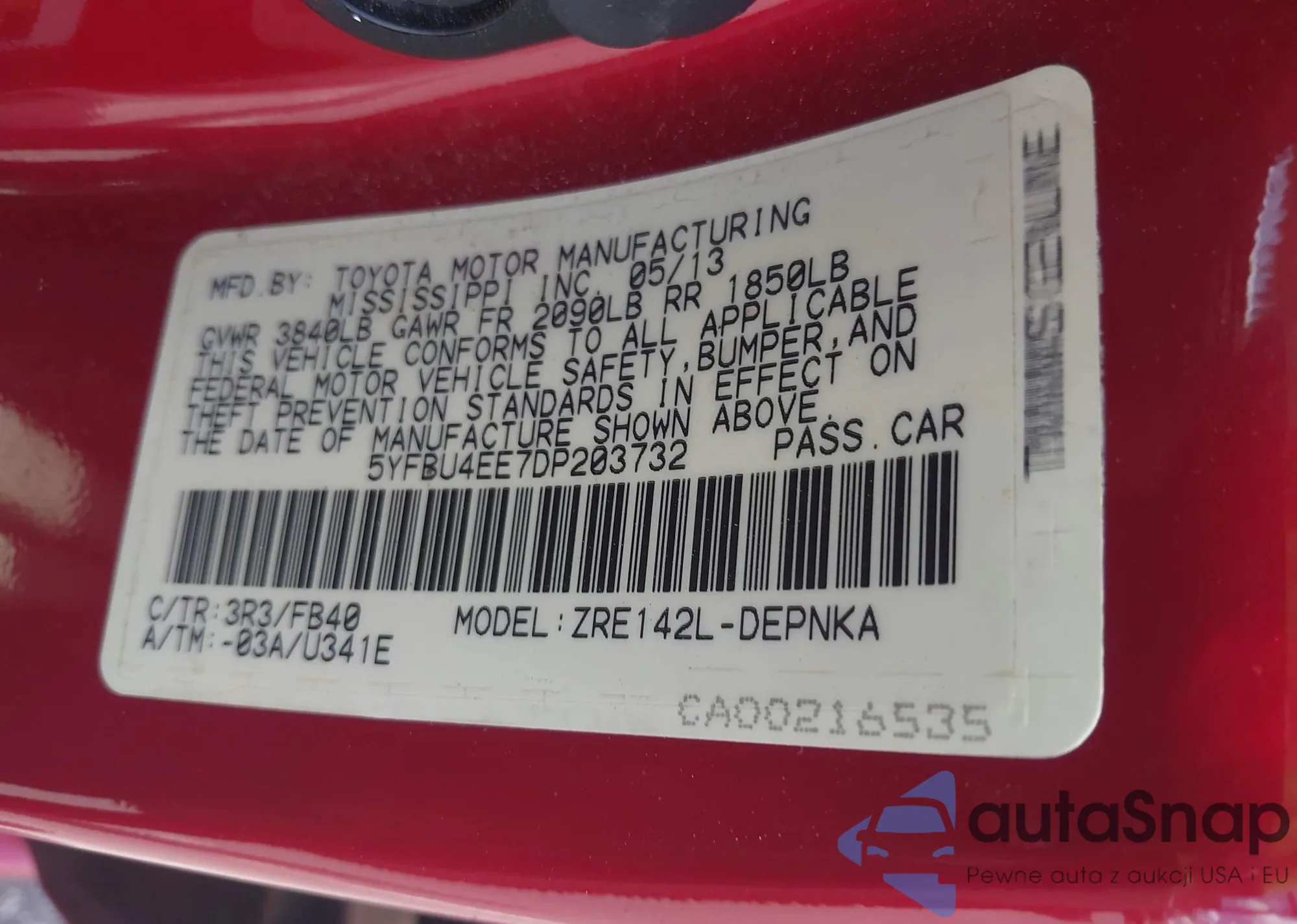 LOT: 42517852 VIN: 5YFBU4EE7DP203732
