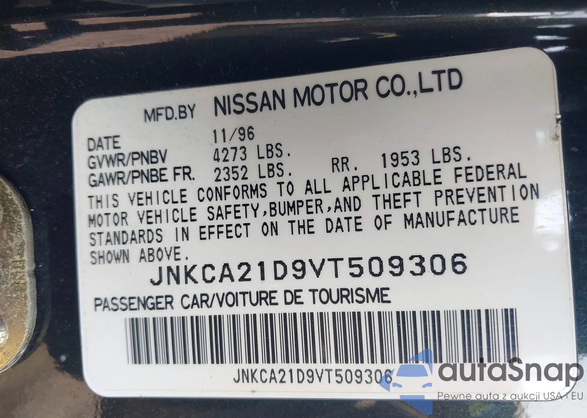 • VIN JNKCA21D9VT509306