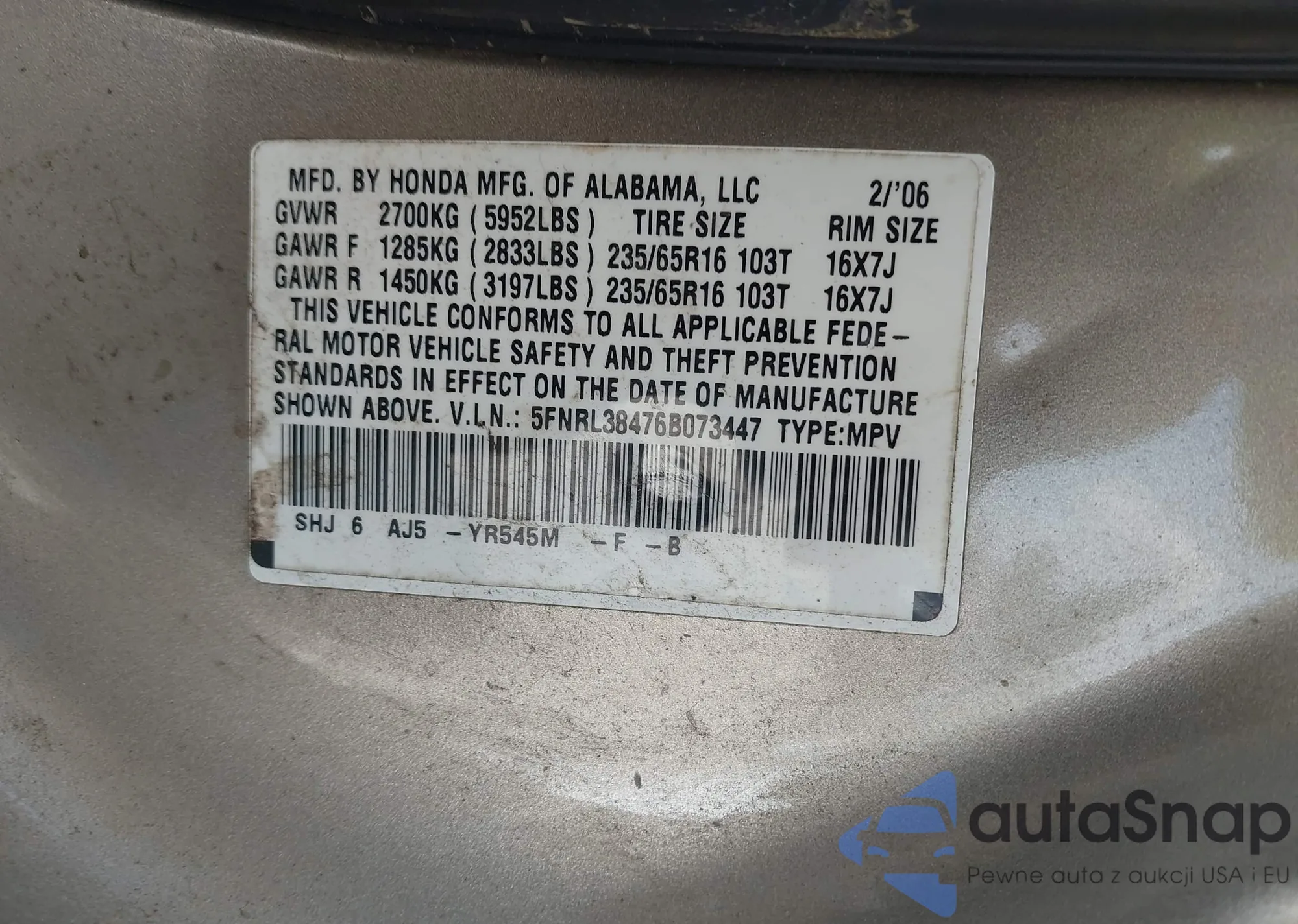 • VIN 2HGFG3B87DH519057