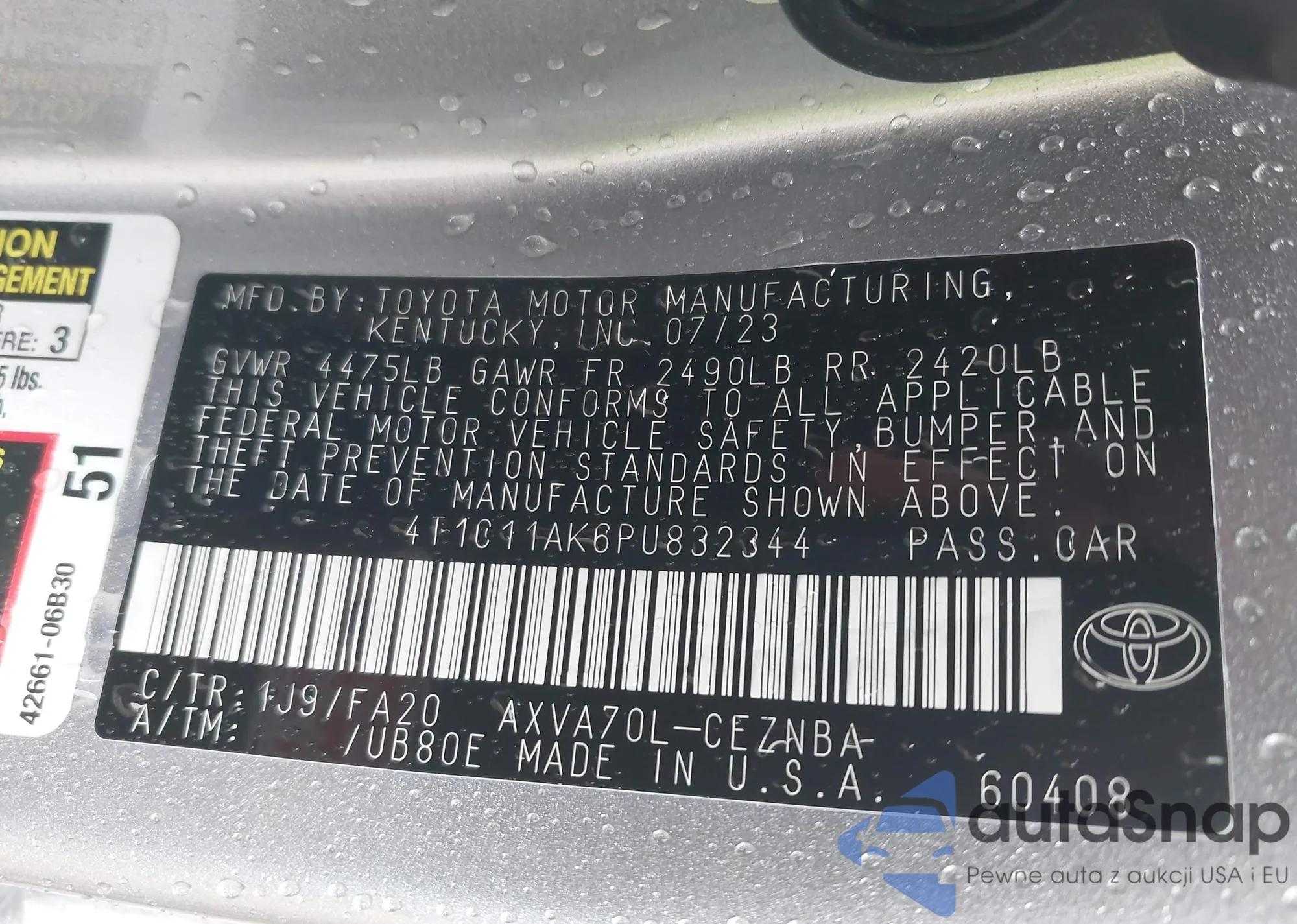 LOT: 42352443 VIN: 4T1C11AK6PU832344
