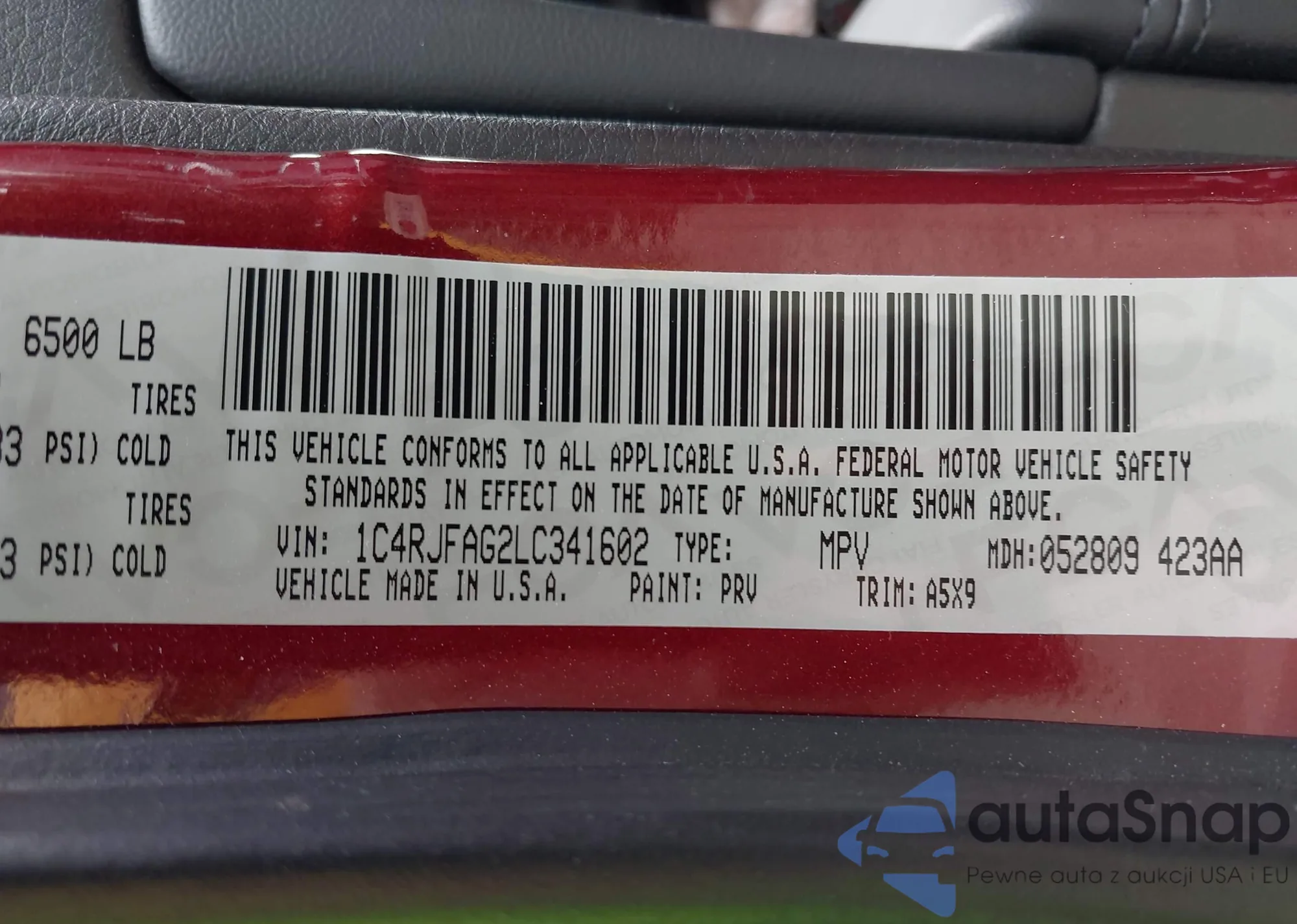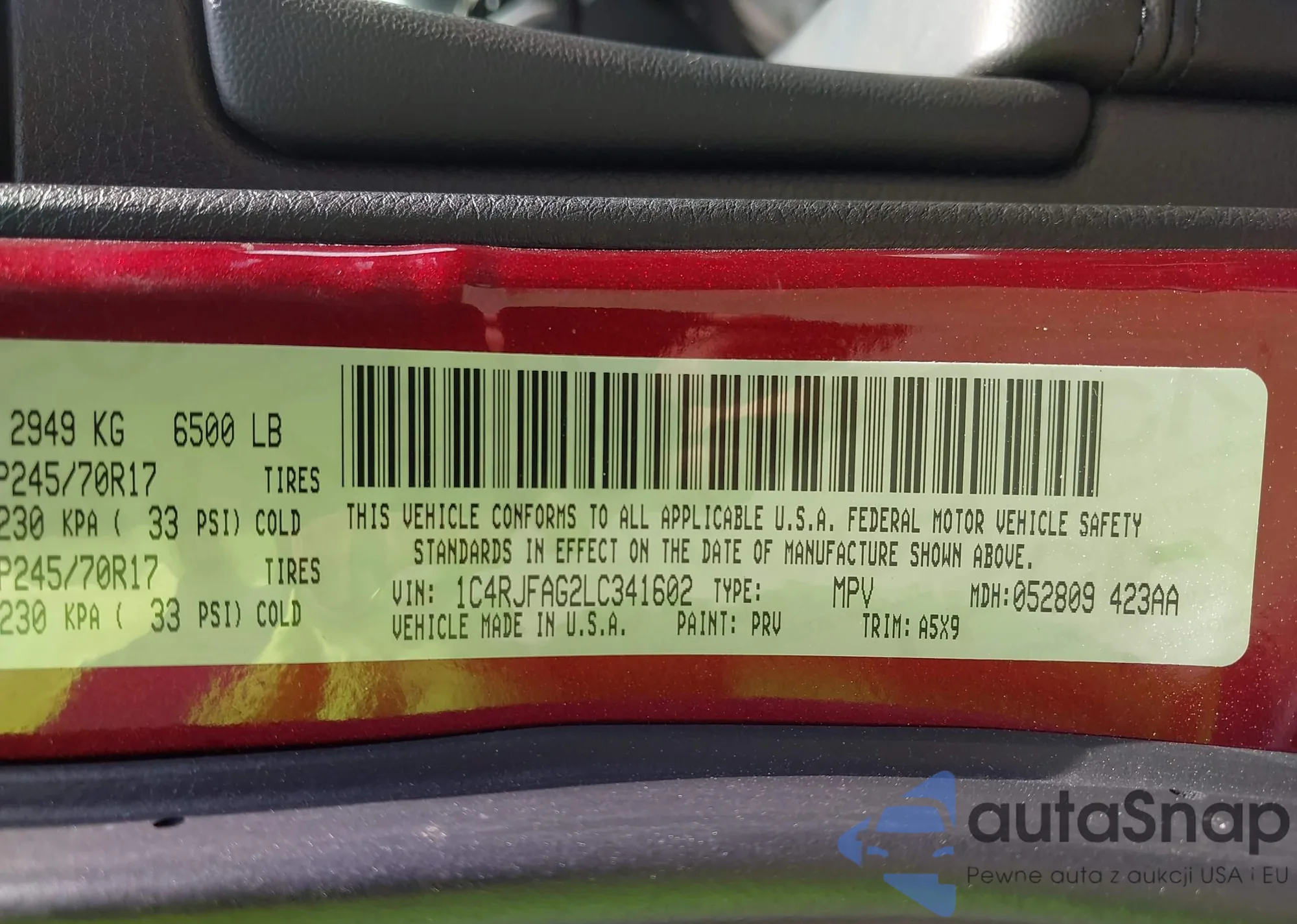 • VIN 1C4RJFAG2LC341602