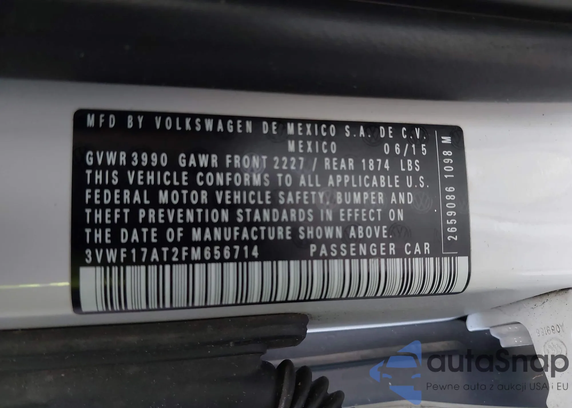 • VIN 3VWF17AT2FM656714