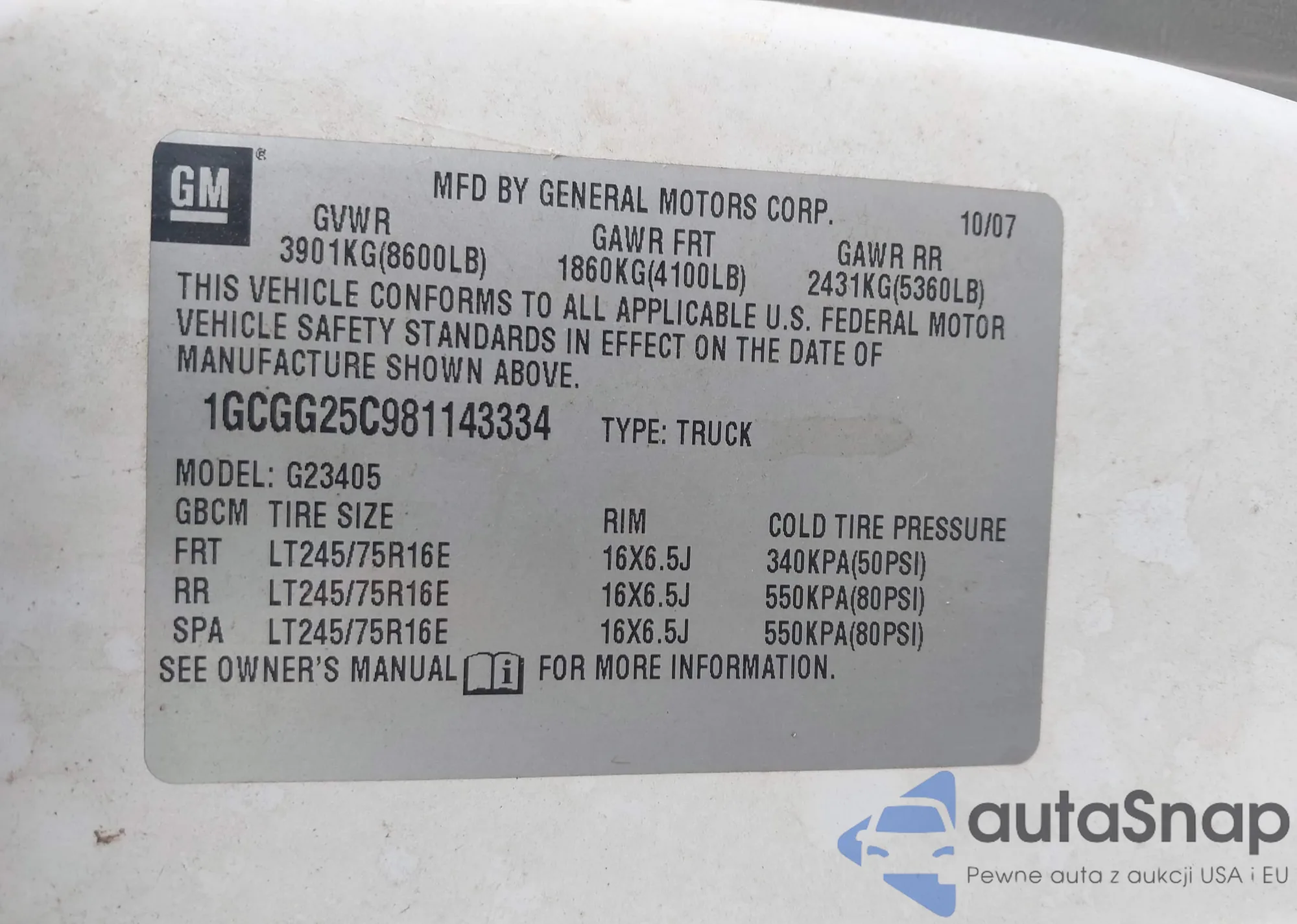 • VIN 1GCGG25C981143334