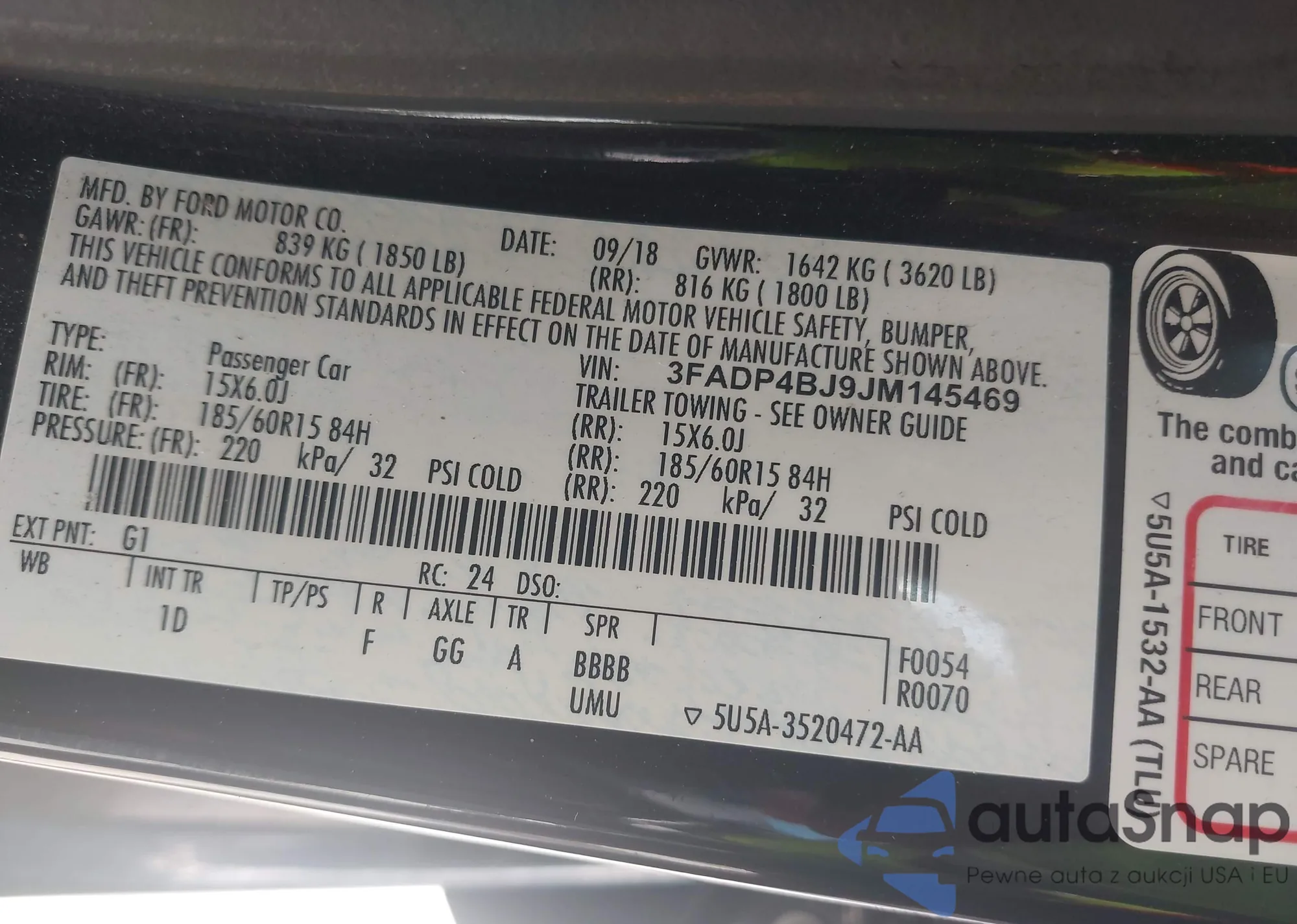 • VIN 3FADP4BJ9JM145469