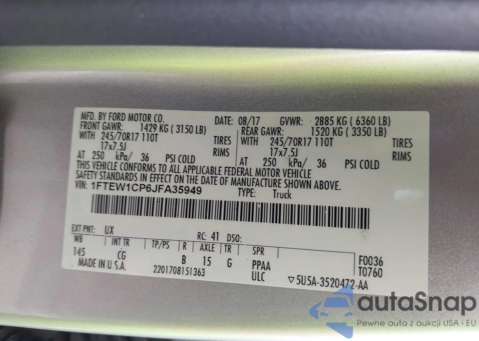 • VIN 1FTEW1CP6JFA35949
