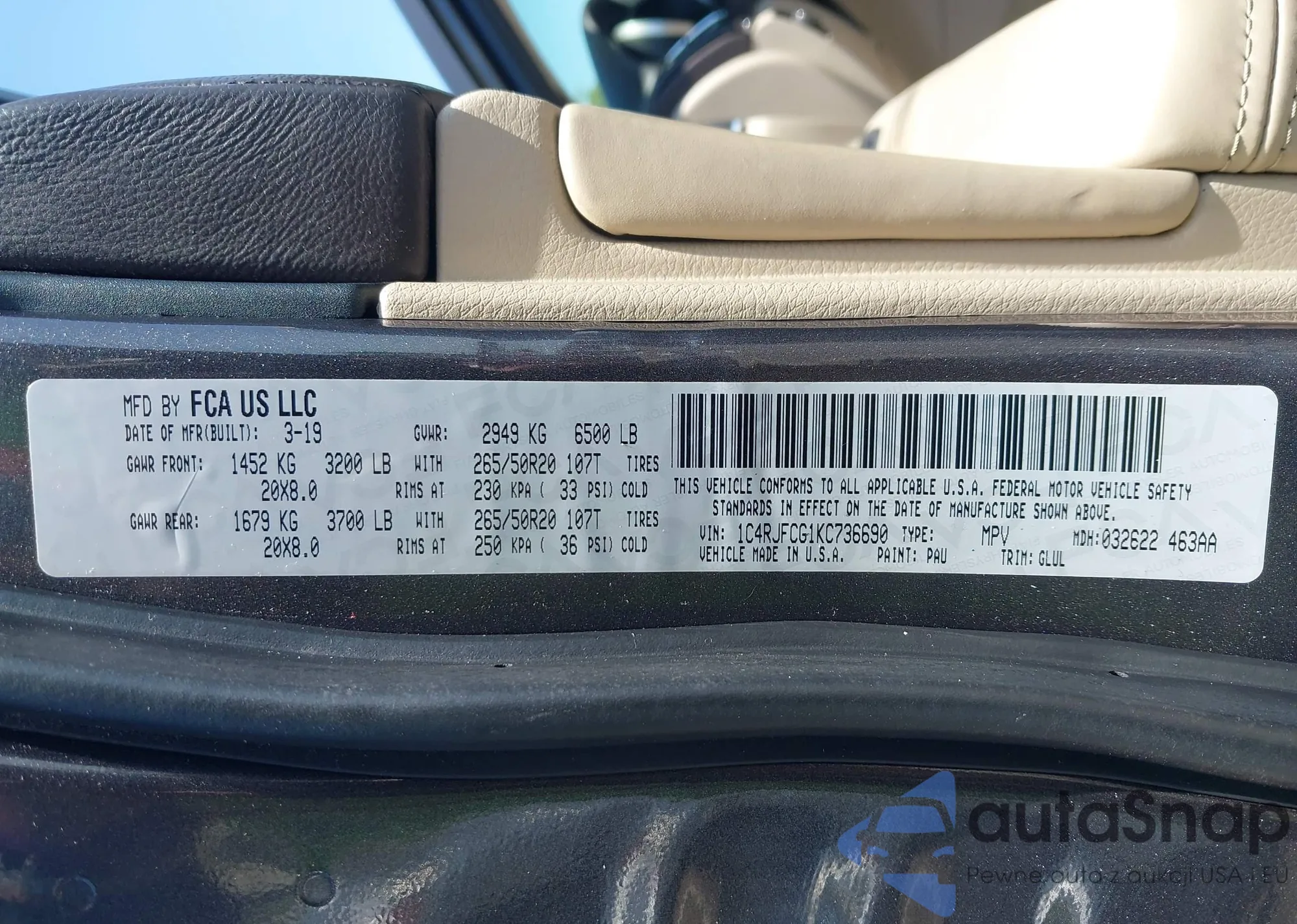 • VIN 1C4BJWCG0DL573065