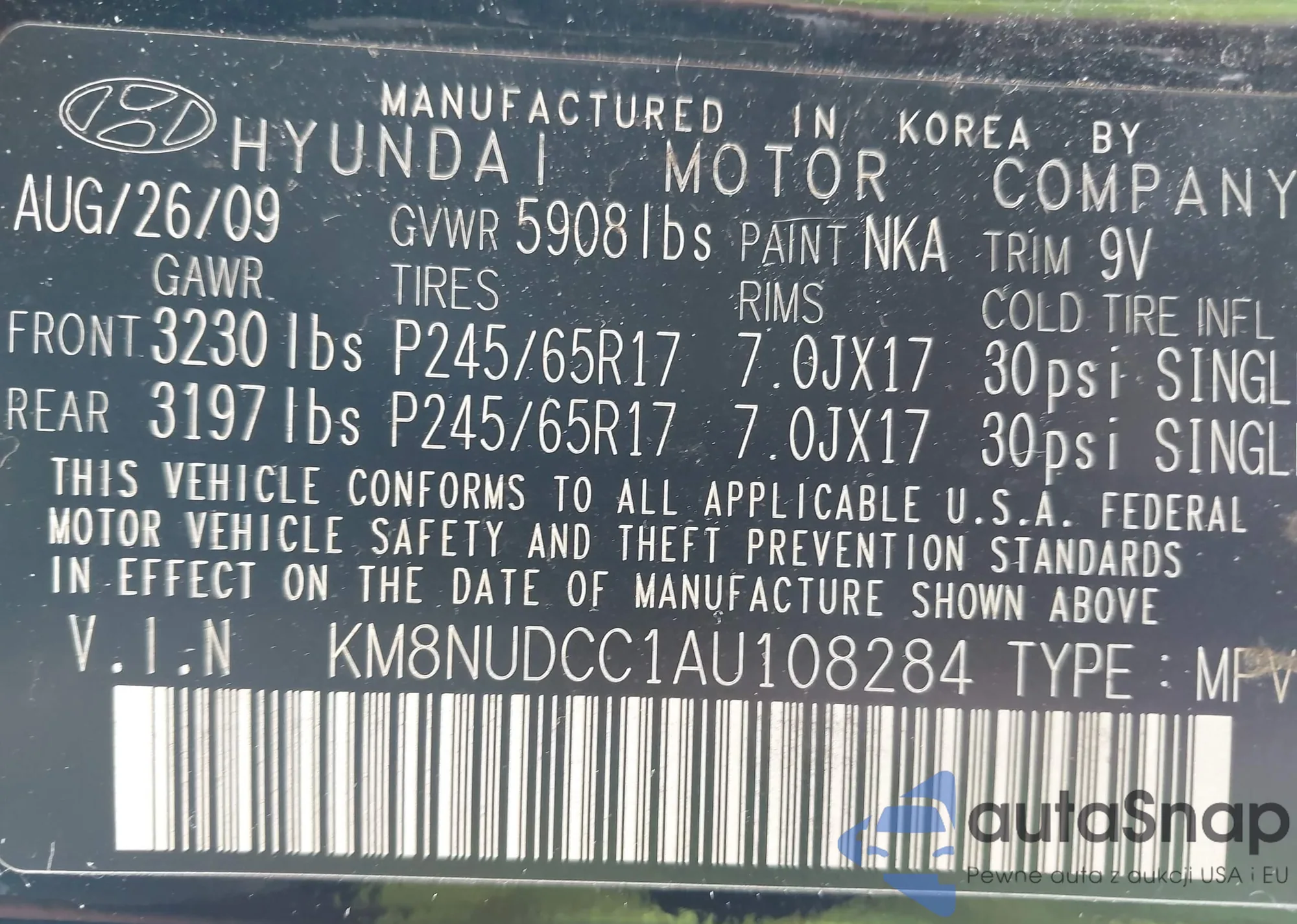 • VIN KM8NUDCC1AU108284