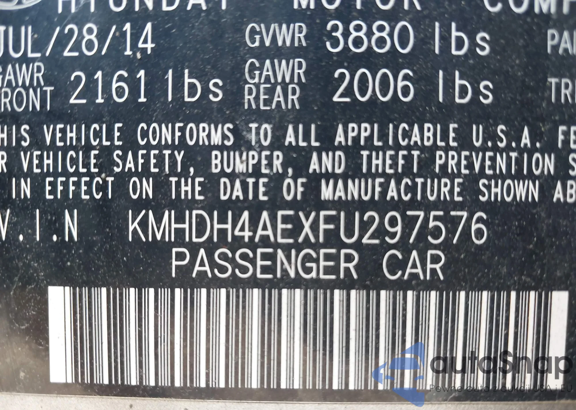 LOT: 42715649 VIN: KMHDU4AD3AU108617