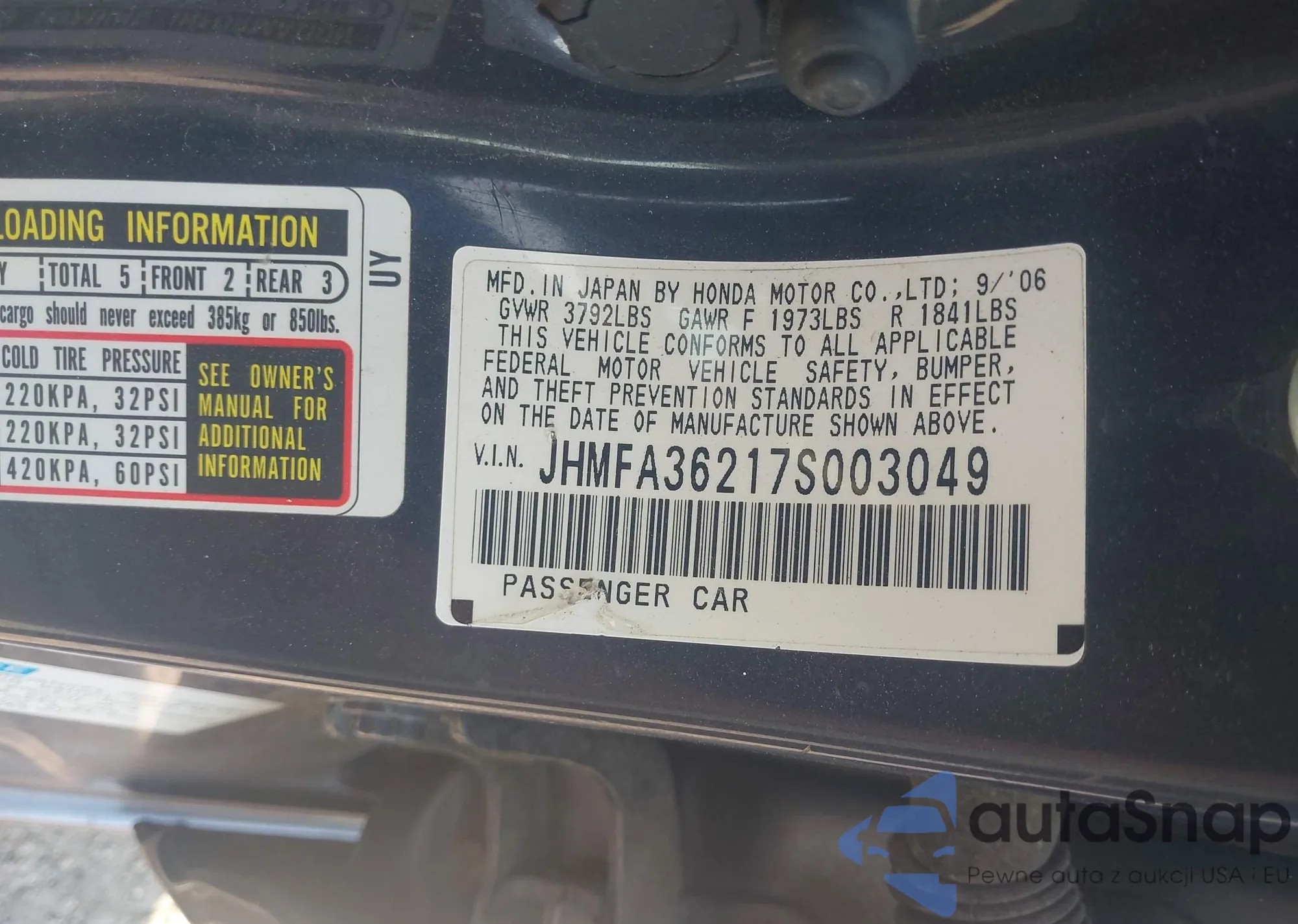 • VIN JHMFA36217S003049